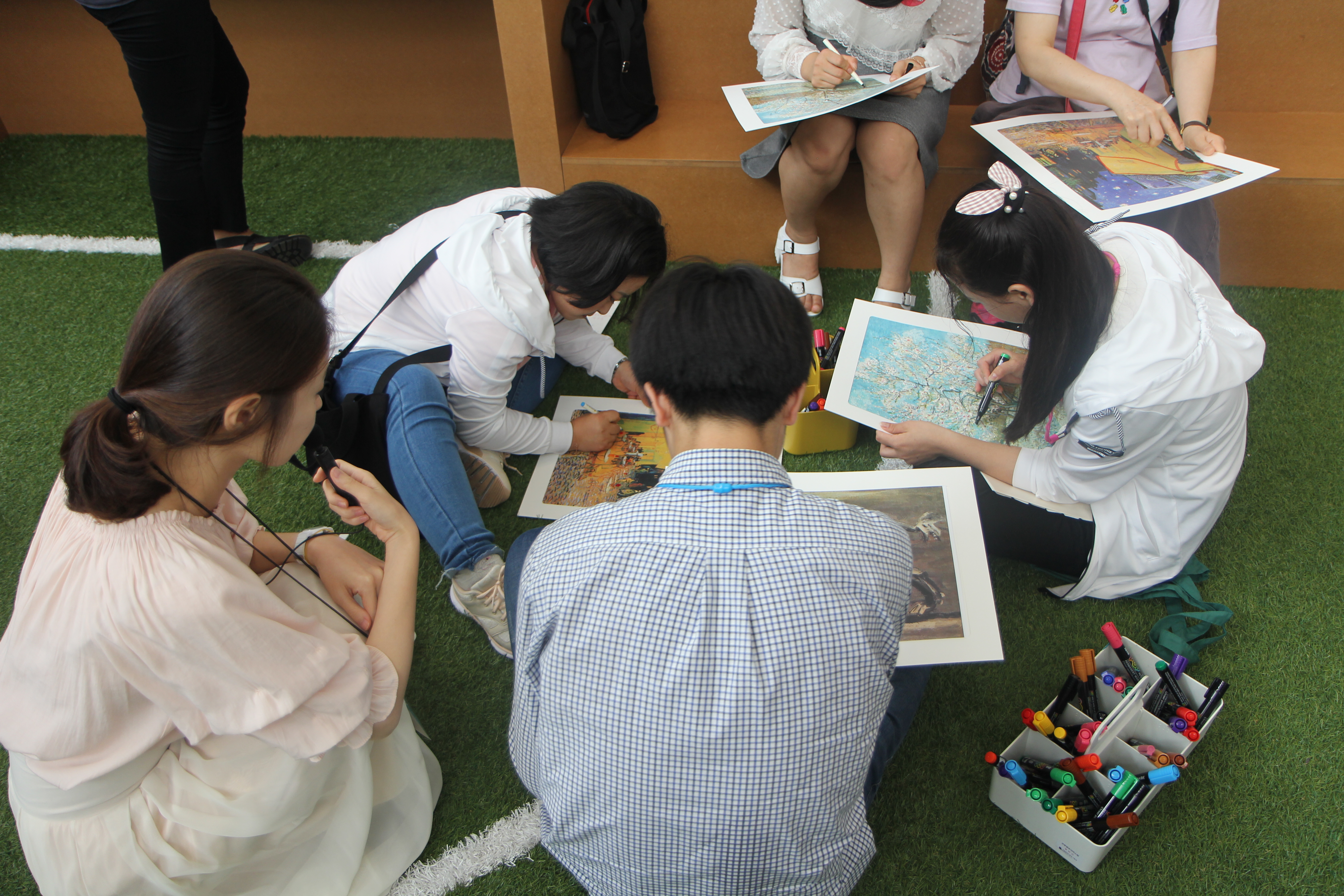 첫째날 국립현대미술관 서울관에 전시 중인 예술작품을 관람했다. 담쟁이 넝쿨이 자라는 정원을 찾아 단체사진을 찍는 미션도 진행했다. 특히 탈북청소년들이 직접 명화 위에 매직 등 드로잉 재료를 이용하여 자신들만의 새로운 작품을 재창조해보는 시간을 가졌다.