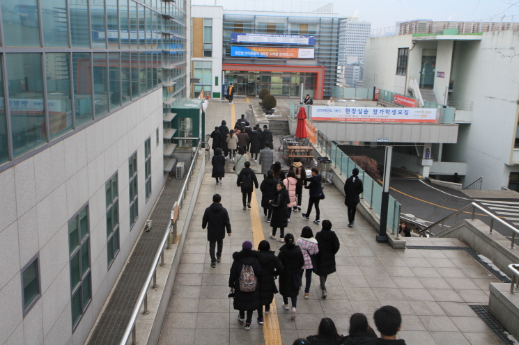▲교육기관 체험(대학탐방 및 질의응답) 중인 학생들