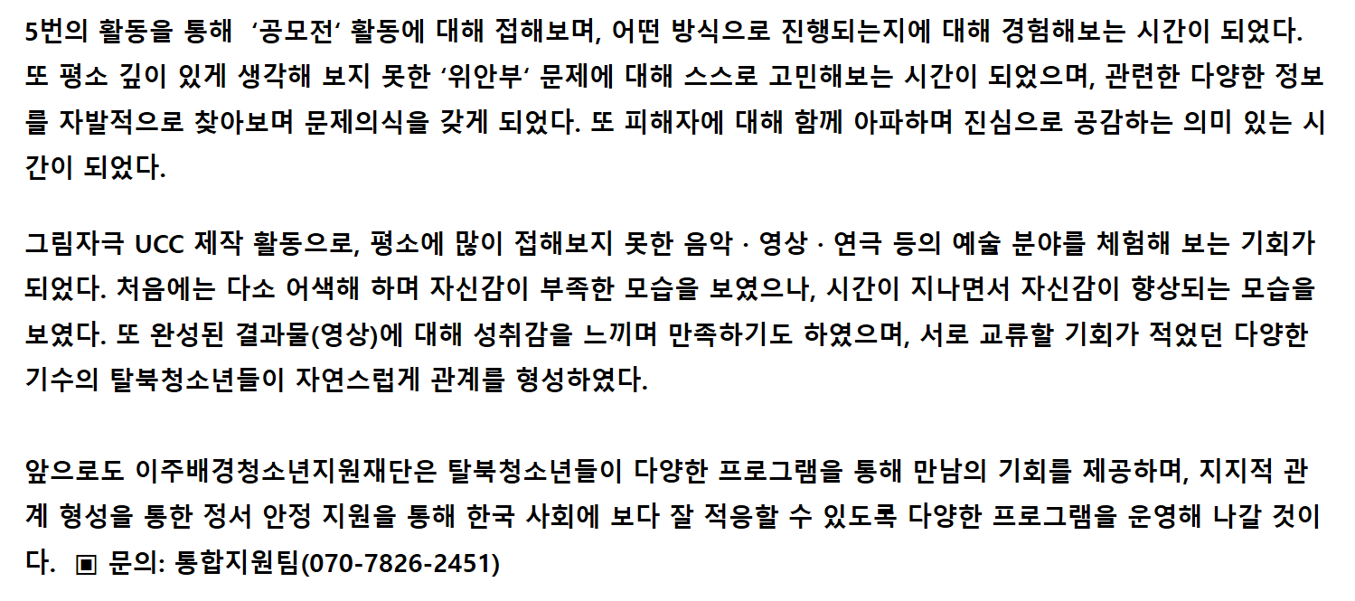 이주배경청소년지원재단 탈북청소년 '소모임' 운영
