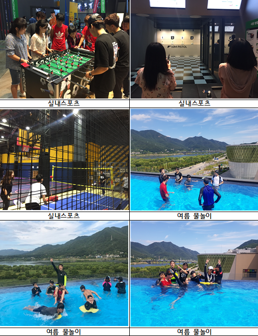 무더운 날씨가 한풀 꺾여 생각했던 것보다 사람이 많지 않아 여유로운 공간에서 물놀이를 즐길 수 있었다. 실내와 실외로 나누어진 워터파크장을 자유롭게 누비며 각자의 방식으로 물놀이를 즐겼다. 특히 루프탑 실외 수영장은 푸른 하늘과 뭉게구름, 푸른 산이 펼쳐진 아름다운 광경을 뽐내고 있었다. 친했던 혹은 친해진 친구들과 무리지어 잠수 게임을 하거나 물싸움을 하거나 수영 시합을 하기도 하였으며, 아름다운 배경으로 사진을 촬영하며 여유로운 시간을 보냈다.