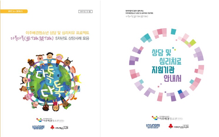 이주배경청소년지원재단은 “다(多)문화 청소년”들이 편안한 분위기에서 “차(茶)”를 마시며 “속 깊은 이야기(talk)”를 마음껏 한다는 의미를 담고 있는 “다톡다톡(多talk茶talk)”을 통해 지난 5년간 총 4,963명의 이주배경청소년에게 심리‧정서적 지원을 제공했으며, 이 중 495명에게는 심리치료비를 지원했다. 이는 그 동안 매년 발간한 『다톡다톡(多talk茶talk) 상담사례 모음집』과, 5년 동안 구축한 전국 심리‧정서지원 네트워크 결과물인 『다톡다톡(多talk茶talk) 상담 및 심리치료 지원기관 안내서』에도 잘 나타나있다.