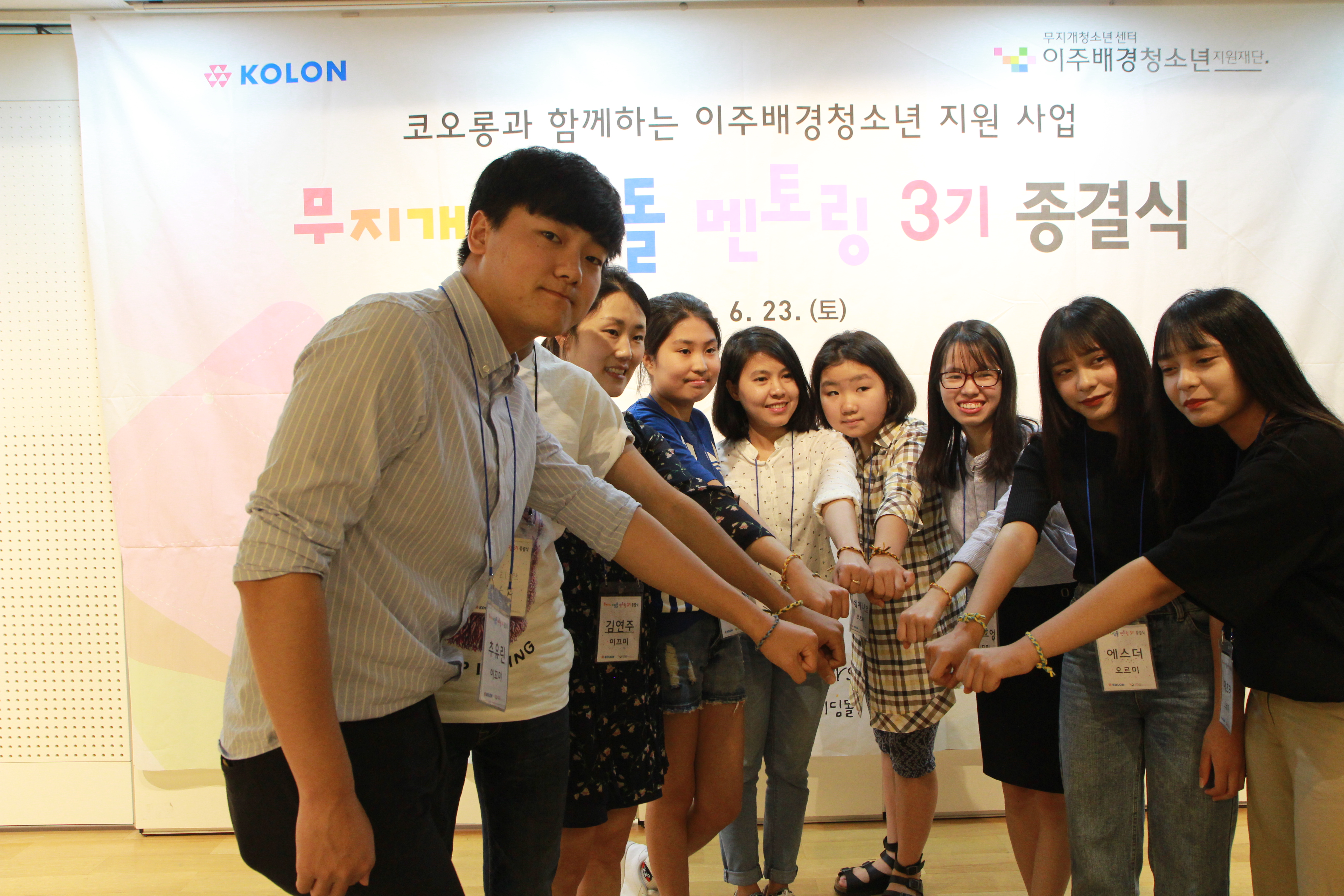 이주배경청소년지원재단(무지개청소년센터)은 지난 6월 23일 서울시 중구에 위치한 서울시NPO지원센터 강당에서 코오롱과 함께하는 이주배경청소년 멘토링 프로그램 '무지개디딤돌' 3기 종결식을 진행했다.