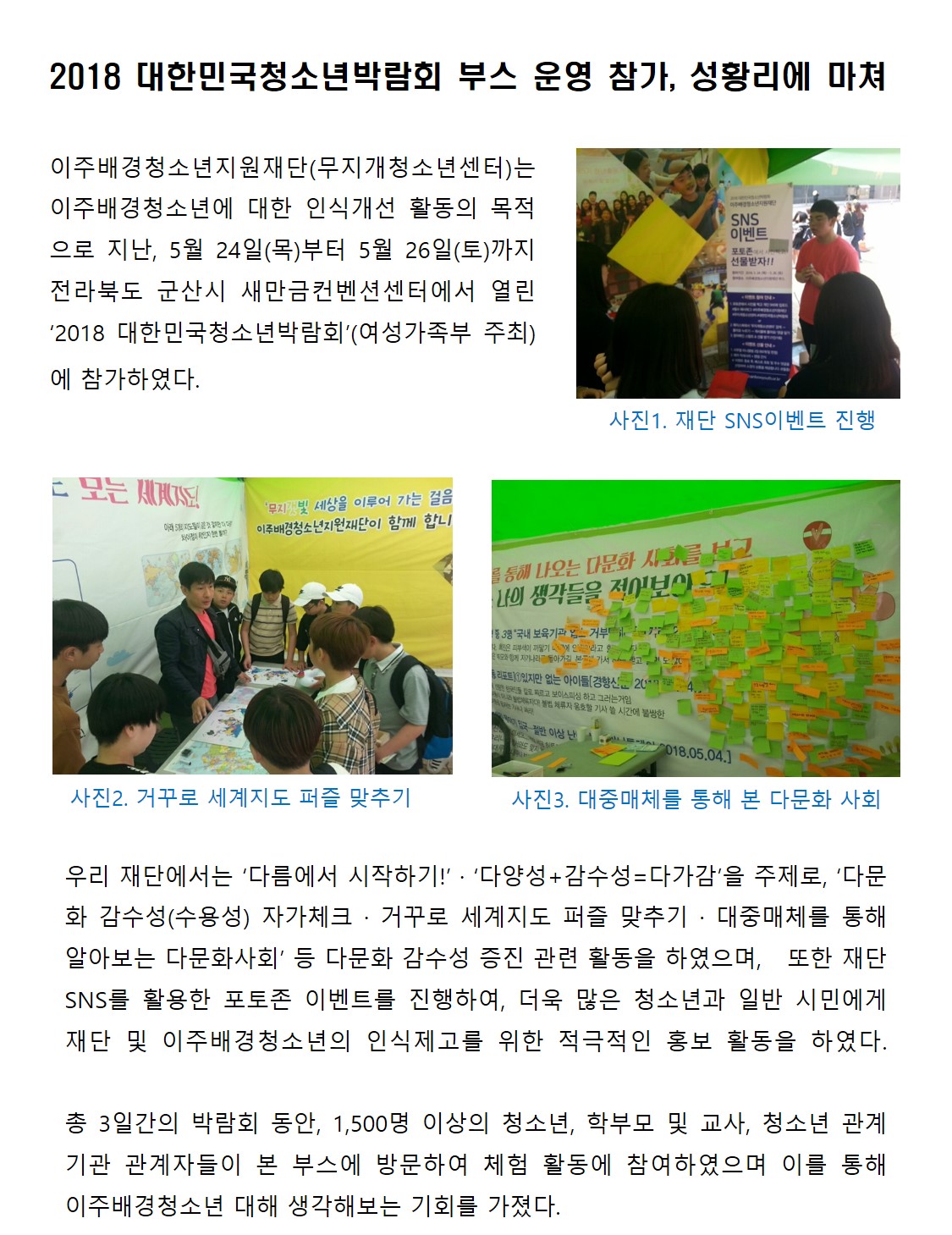 '2018 대한민국청소년박람회' 부스 참가 운영