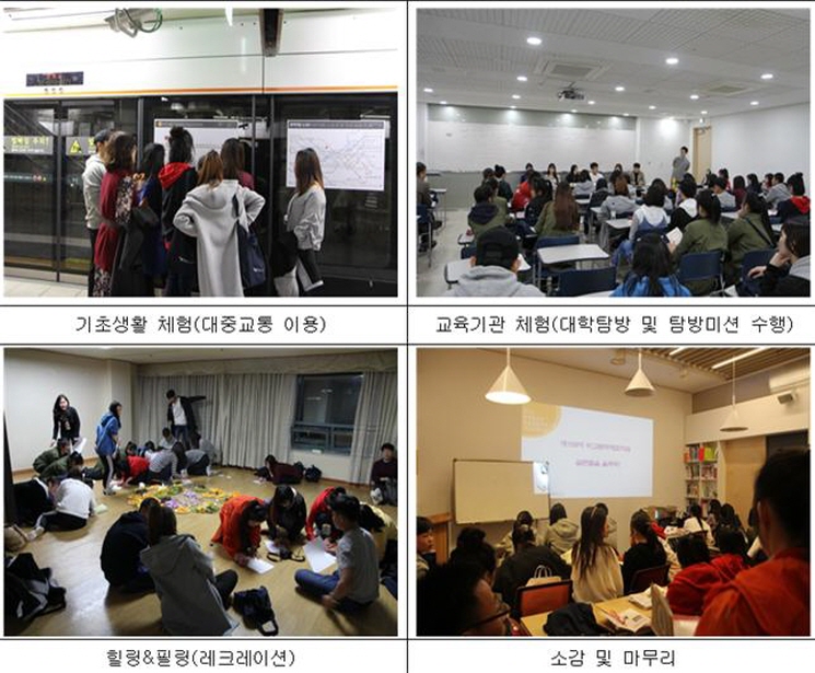 이어진 교육기관 체험(대학탐방 및 탐방미션 수행)에서는 대학교 자원봉사 선생님들과 함께 캠퍼스를 돌며 대학에서 배우거나 실행할 수 있는 것들을 익히고, 추가로 자원봉사 선생님들께 질의응답을 하는 미션을 수행했다. 특히 이번부터는 선배 탈북청소년인 또래강사도 질의응답에 참여해 탈북대학생으로서의 생활, 노하우 등을 공유해 뜻깊은 시간이 되었다. 숙소에서 푸짐한 간식을 먹으며 재밌는 레크레이션과 하나원 퇴소 후 받아볼 수 있는 ‘나에게 쓰는 편지’활동을 한 친구들은, 2일차에는 곱게 한복을 차려입고 남산골 한옥마을을 누비는 문화 체험을 만끽했다. 마지막으로 백화점에서 직접 상품을 선택하고 결제까지 해보는 구매체험을 마친 학생들은, 식사 후 센터로 돌아와 비교문화체험학습을 통해 얻은 경험들을 퀴즈 형태로 풀어보는 ‘도전! 골든벨!’과 소감 발표까지 무사히 함께 했다.