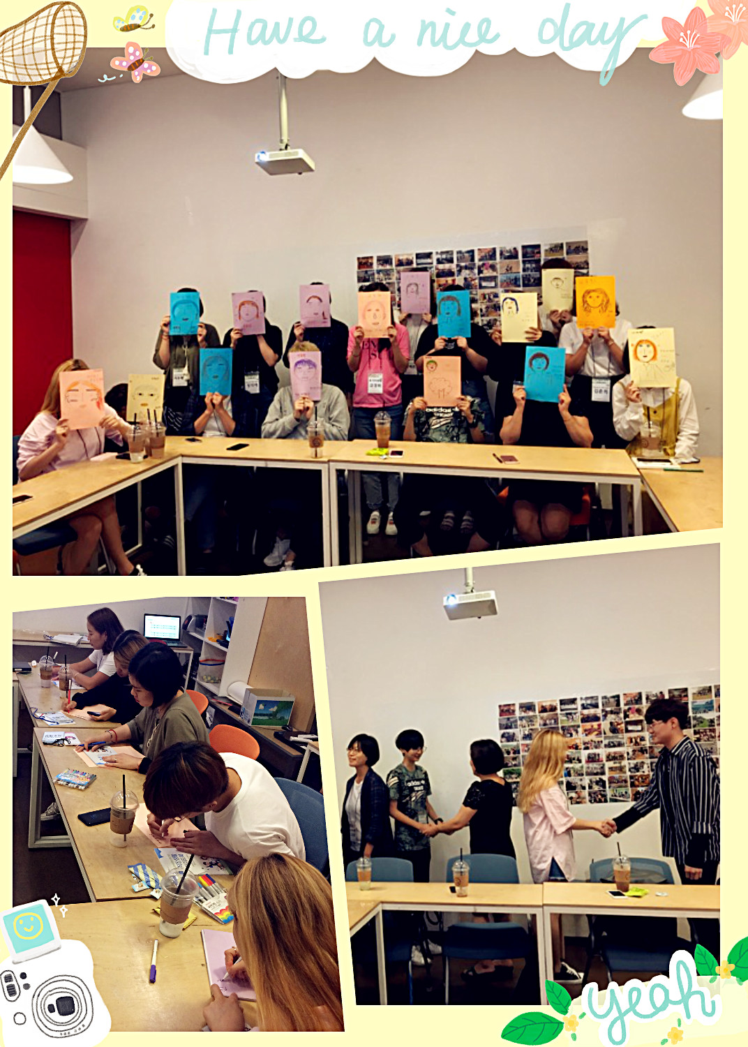 이번 ‘내-일을 잡아라’ 프로그램은 두개 과정의 교육생 모두 모여서 오리엔테이션을 같이 진행하였다. 프로그램 첫 날의 긴장을 풀기 위해 눈 맞추기, 손잡기, 안아주기 등 특별한 인사법으로 자기소개의 시간을 가졌다. 초상화 그리는 활동으로 어색함을 풀고, 친밀감 형성에 많은 도움이 되었다. 오리엔테이션의 마지막 순서에서 교육생들은 새로운 시작을 맞이하면서 2017년 말까지 달성하고자하는 목표를 작성하는 시간을 가졌다.