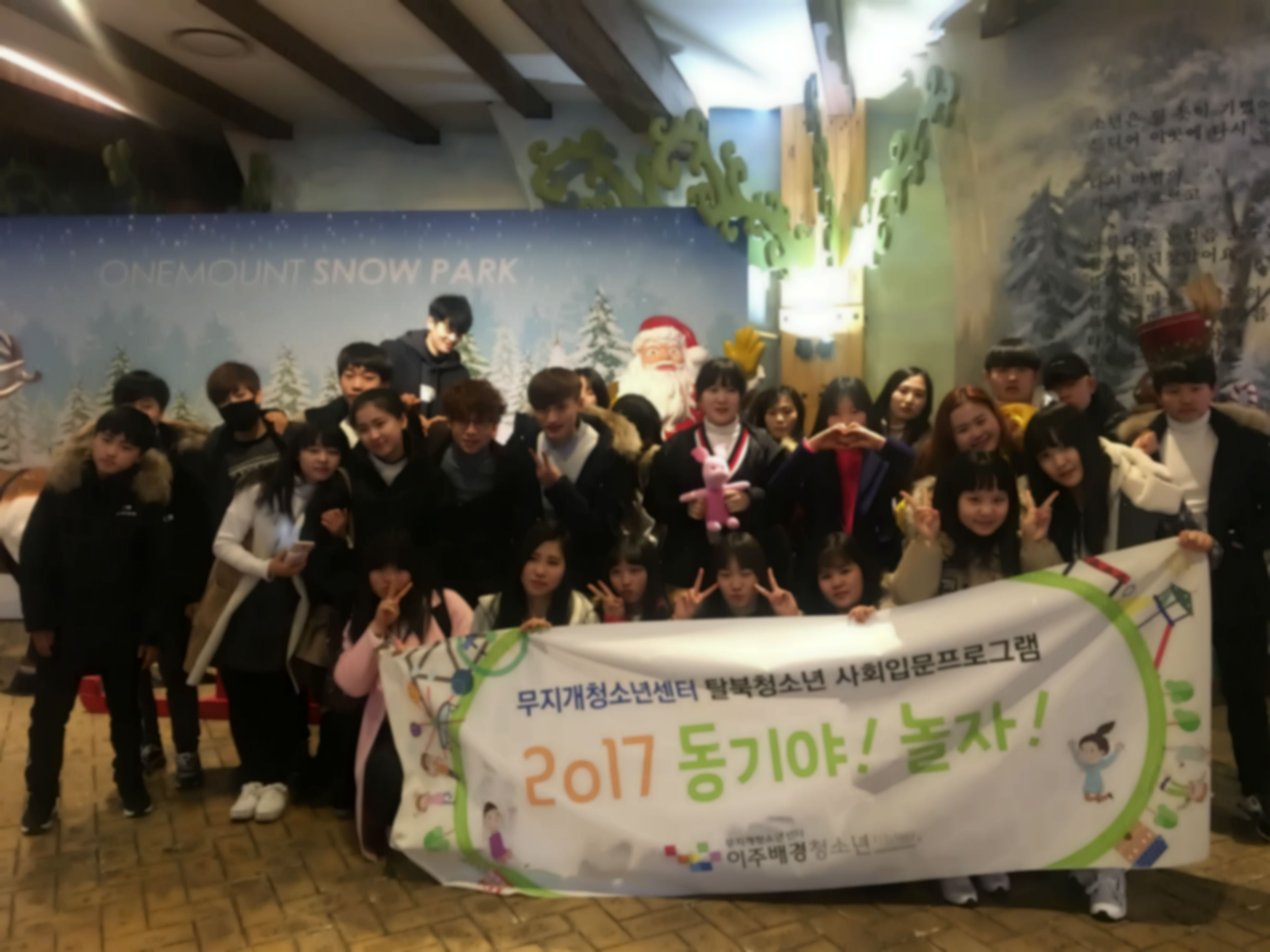 2017년 제1회 '동기야! 놀자!‘는 탈북청소년들의 특성과 작년에 참가한 청소년들의 수요조사를 반영하여 겨울에 즐길수 있는 레포츠 프로그램들을 중심으로 경기도 고양시 일대에서 진행되었다.