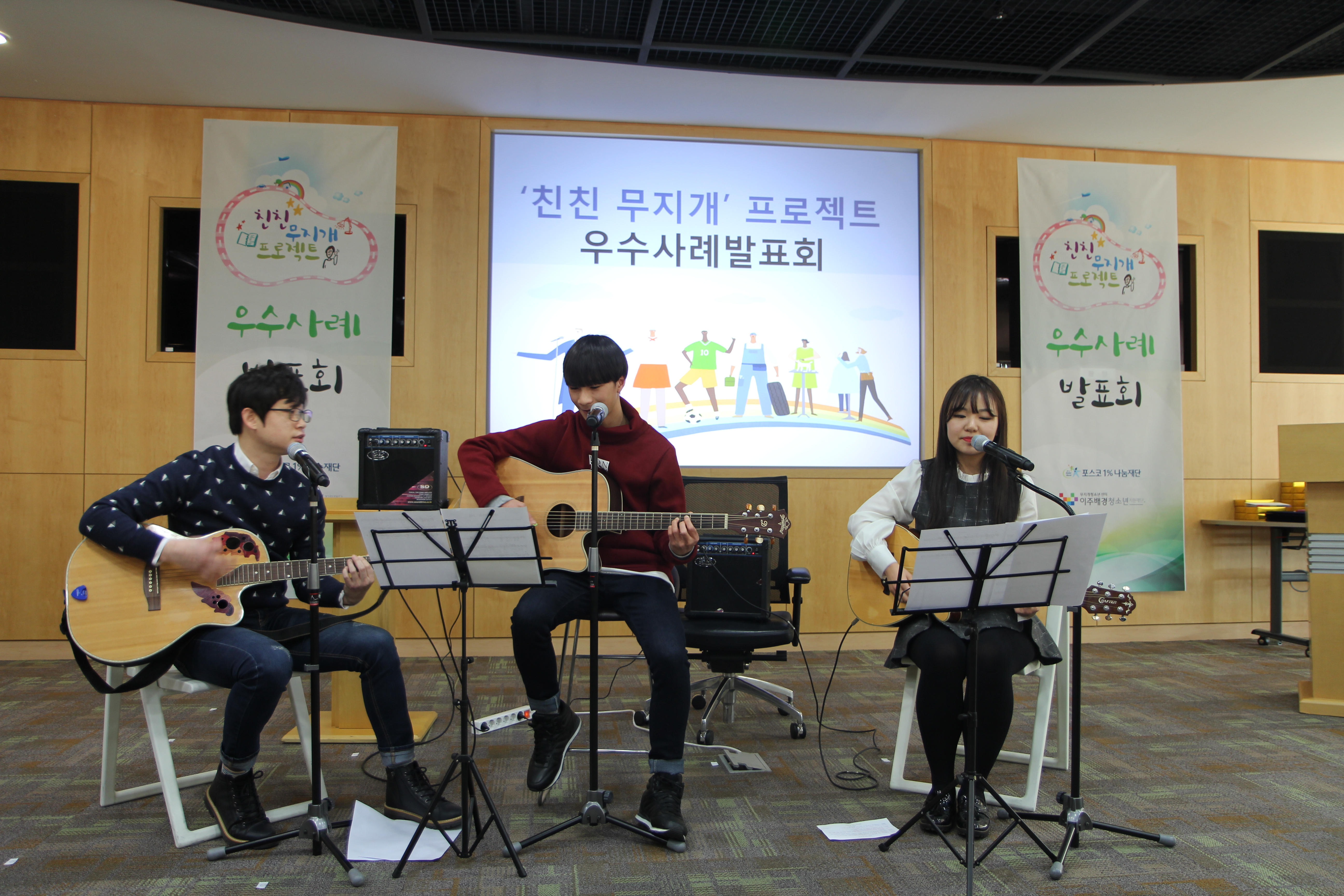 ‘친친 무지개’를 통해 기타실력을 갈고 닦은 청소년의 특별 기타공연으로 발표회는 시작되었고, 이후 꿈과 진로를 위한 김정환 박사의 특별 강연이 이어졌다. 또한 1, 2차년도 ‘친친 무지개’ 우수 장학생이 이날 3차년도 우수사례 청소년에게 아낌없는 격려와 조언으로 수상을 축하해주는 자리도 마련되었다.