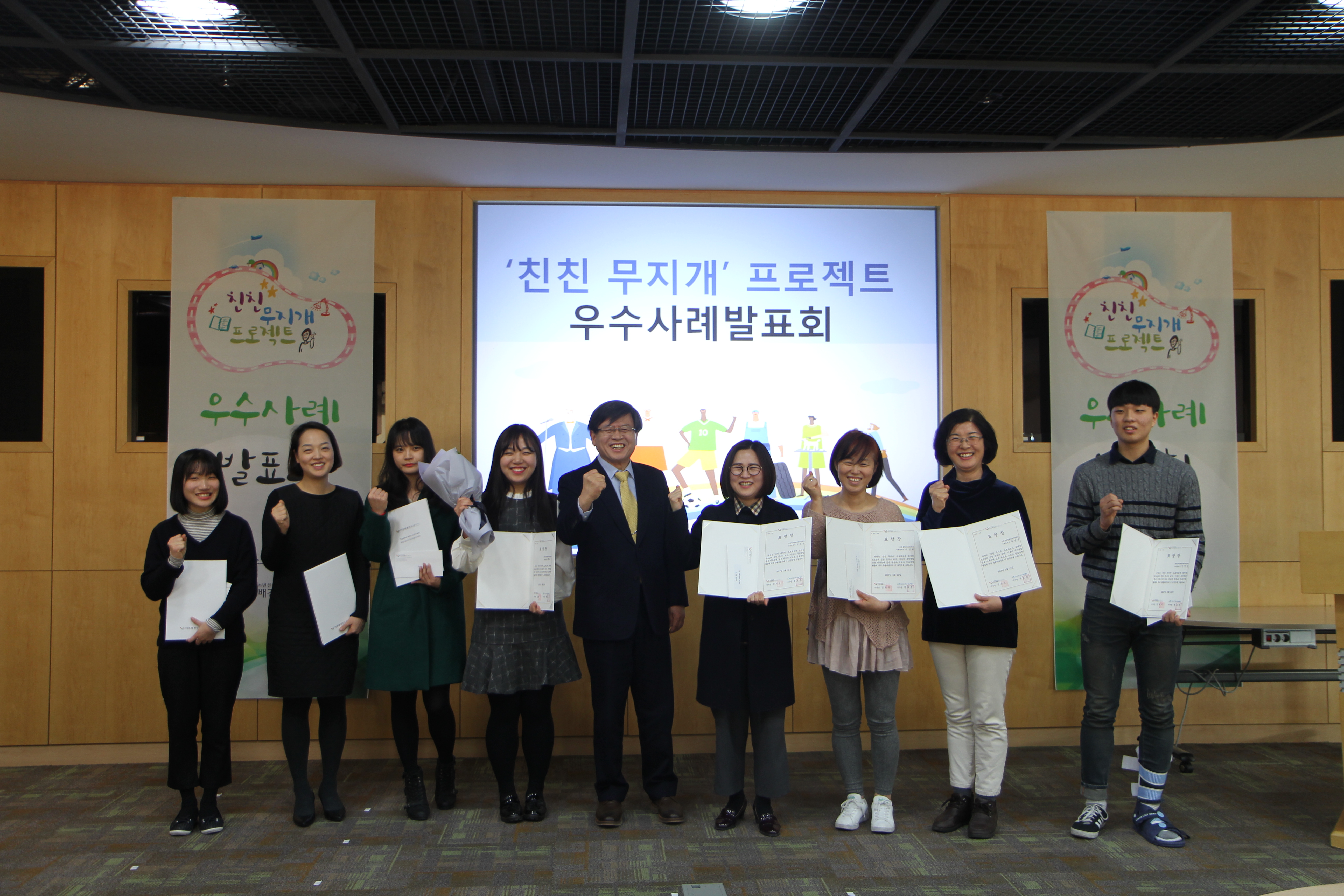 '친친 무지개 프로젝트'는 포스코 1%나눔재단의 후원으로 이주배경청소년에게 맞춤형 진로교육비를 지원하는 사업으로 2014년부터 3년간 청소년들의 진로개척에 큰 힘이 되어주었고, 올해 세 번째로 우수사례 발표회 자리를 마련했다.