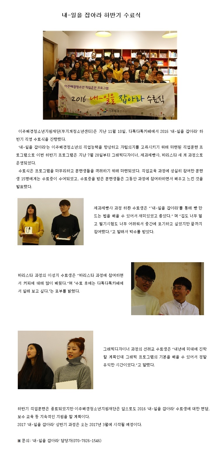 이주배경청소년 직업훈련 프로그램 2016 '내-일을 잡아라' 하반기 수료식 실시