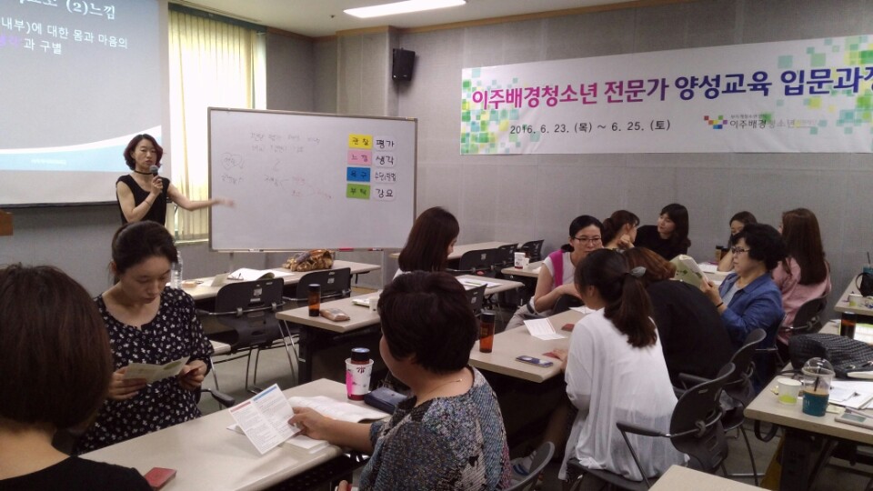 이주배경청소년지원재단(무지개청소년센터)에서는 이주배경청소년과 관련된 실무자의 전문성 향상을 위하여 지난 6월 23일(목)부터 6월 25일(토) 까지 2박 3일 동안 ‘2016년 이주배경청소년 양성교육(입문)’ 과정을 실시하였다.