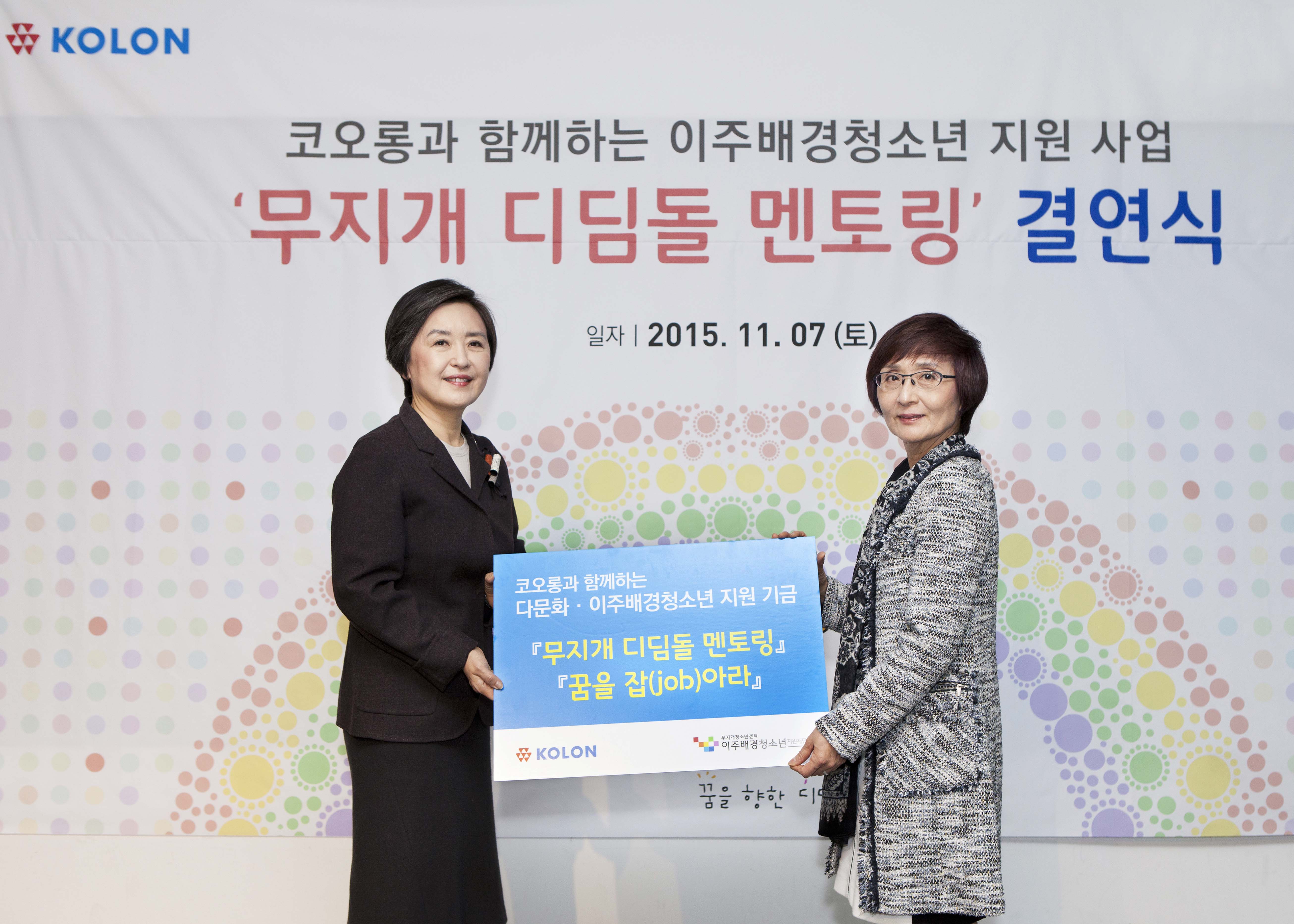 코오롱과 함께하는 이주배경청소년 지원사업은 멘토링 프로그램 ‘무지개 디딤돌’을 통해 이주배경청소년들의 비전과 꿈을 위해 아낌없는 지원을 할 계획이다.
