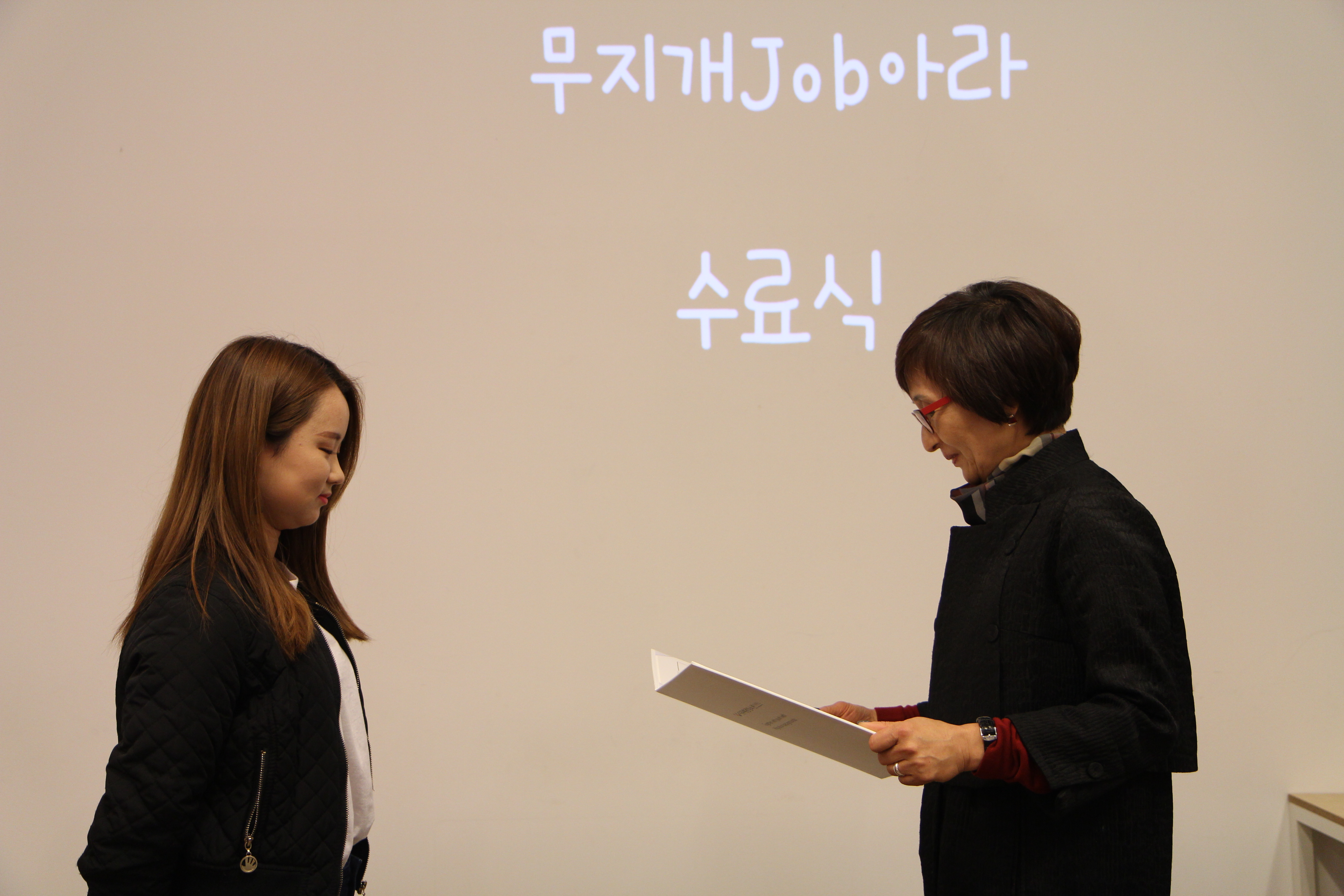 이주배경청소년지원재단(무지개청소년센터)이 중도입국청소년들의 진로지원 프로그램으로 운영하는 무지개Job아라 직영 3기 수료식이 11월 5일 오후 2시, 센터 교육장에서 진행되었습니다. 이번 무지개Job아라 직영 3기는 9월 22일(월) 1박 2일 오리엔테이션을 시작으로 약 7주 동안 운영되었습니다.