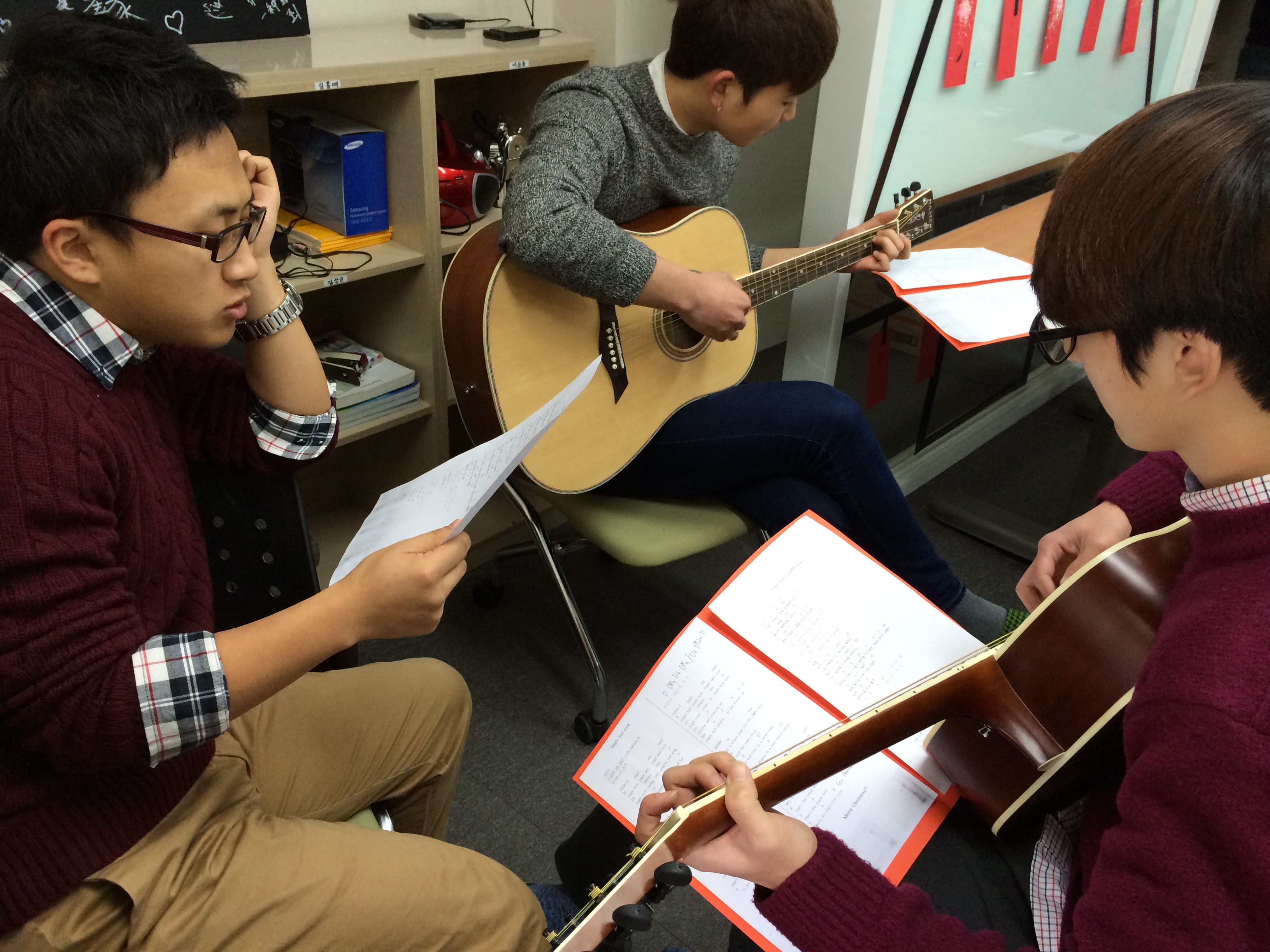 전문강사의 지도로 통기타 연주와 한국 노래를 배우고 있습니다.