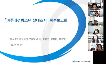 이주배경청소년지원재단(무지개청소년센터)은 지난 9월 17일(목) 한국청소년정책연구원 소속 연구진과 재단 직원들이 참석한 가운데 「이주배경청소년실태조사」연구 용역 착수보고회를 온라인으로 진행했다.