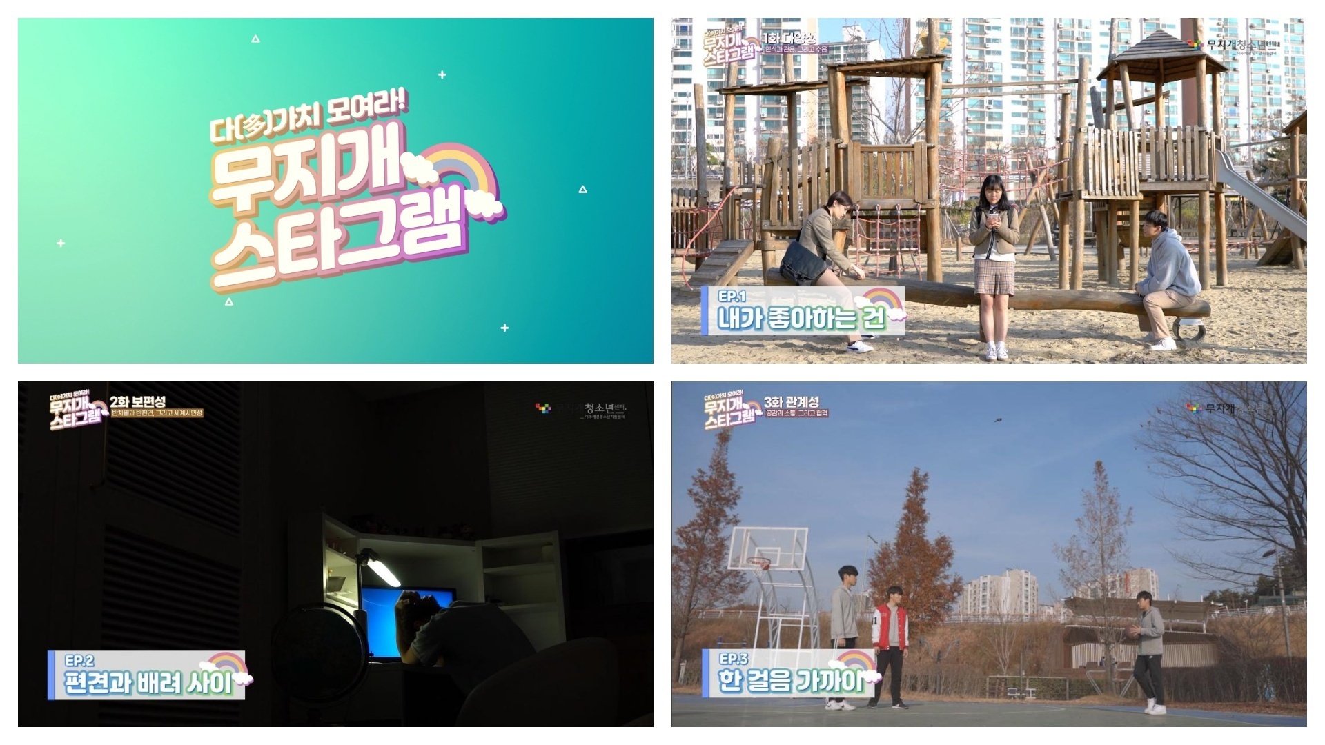 (주)코이픽쳐스의 한명식 PD의 사업 추진 과정 보고로 시작된 시사회는 제작된 '다(多)가치 모여라! 무지개스타그램' 3편의 영상 시사와 추가적인 보완 의견을 나누는 시간으로 이어졌다. '다(多)가치 모여라! 무지개스타그램'은 다문화 감수성의 3가지 영역인 다양성·관계성·보편성을 각각 주제로 만들어졌으며, 각 편의 구성은 아래와 같다.