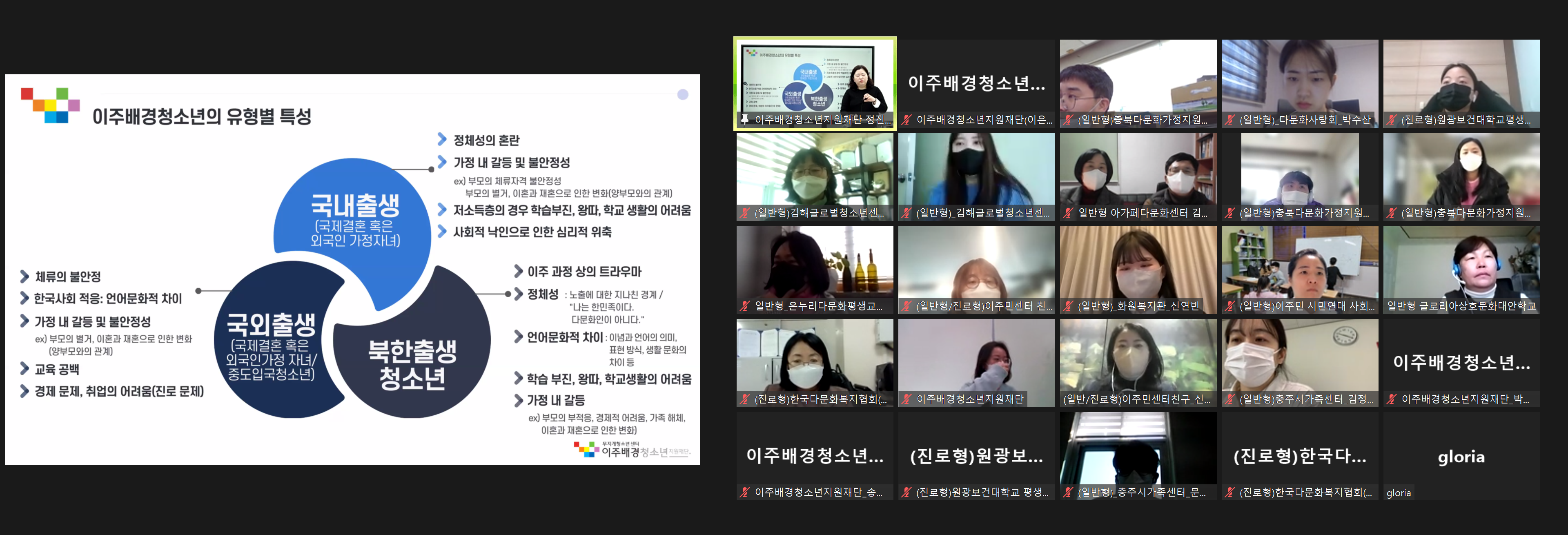 이주배경청소년지원재단은 지난 3월 8일(화)에 2022년 레인보우스쿨 위탁운영 기관으로 선정된 28개소 실무자 35명과 심리정서지원사업 위탁운영 기관 2개소 실무자 4명을 대상으로 효율적인 사업 운영 지원을 위해 위탁운영 오리엔테이션을 실시하였다. 본 행사는 코로나로 인해 비대면 실시간 화상회의를 활용하였으며, 기관의 신규 운영 여부 및 사업 유형을 구분하여 오리엔테이션을 진행하였다.