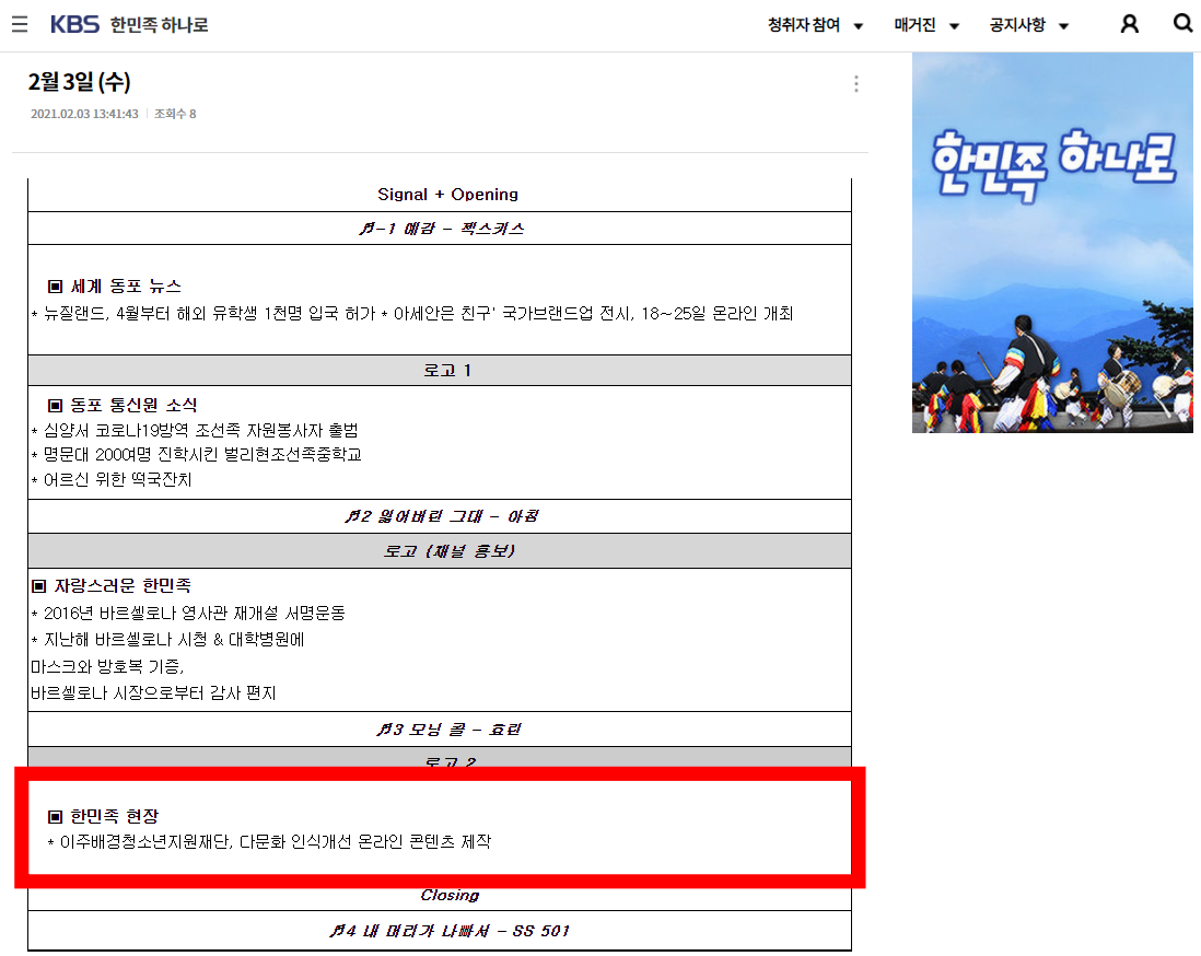 KBS 한민족 하나로 (2021. 2. 3. 송출)