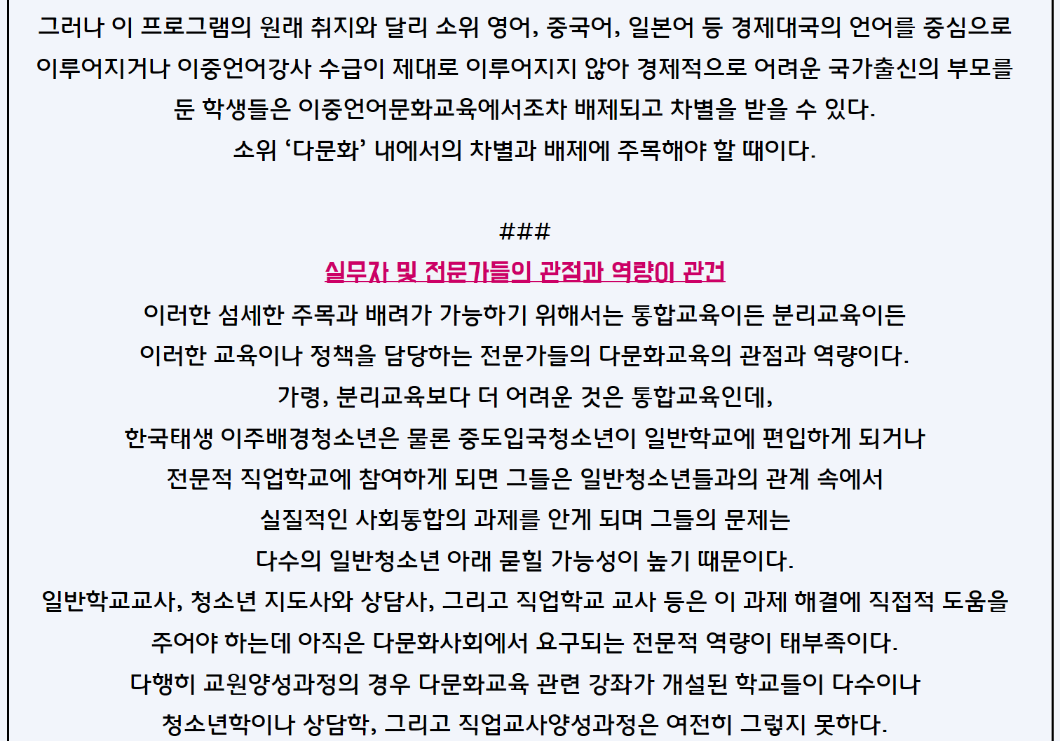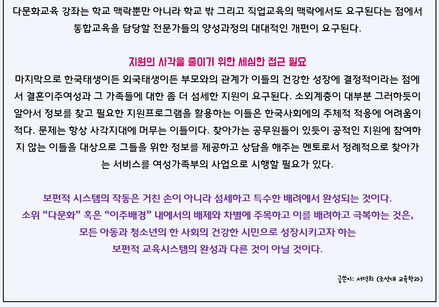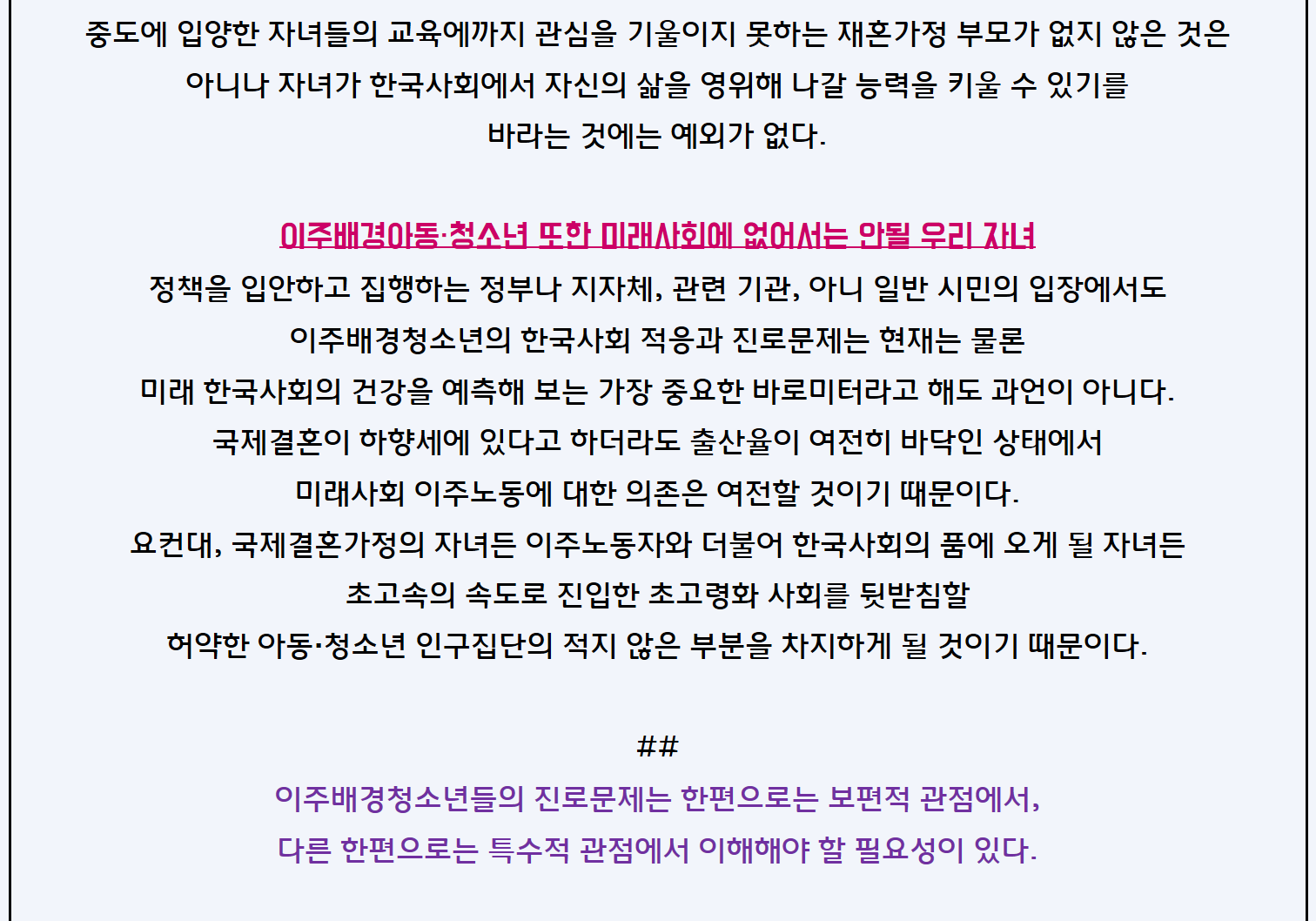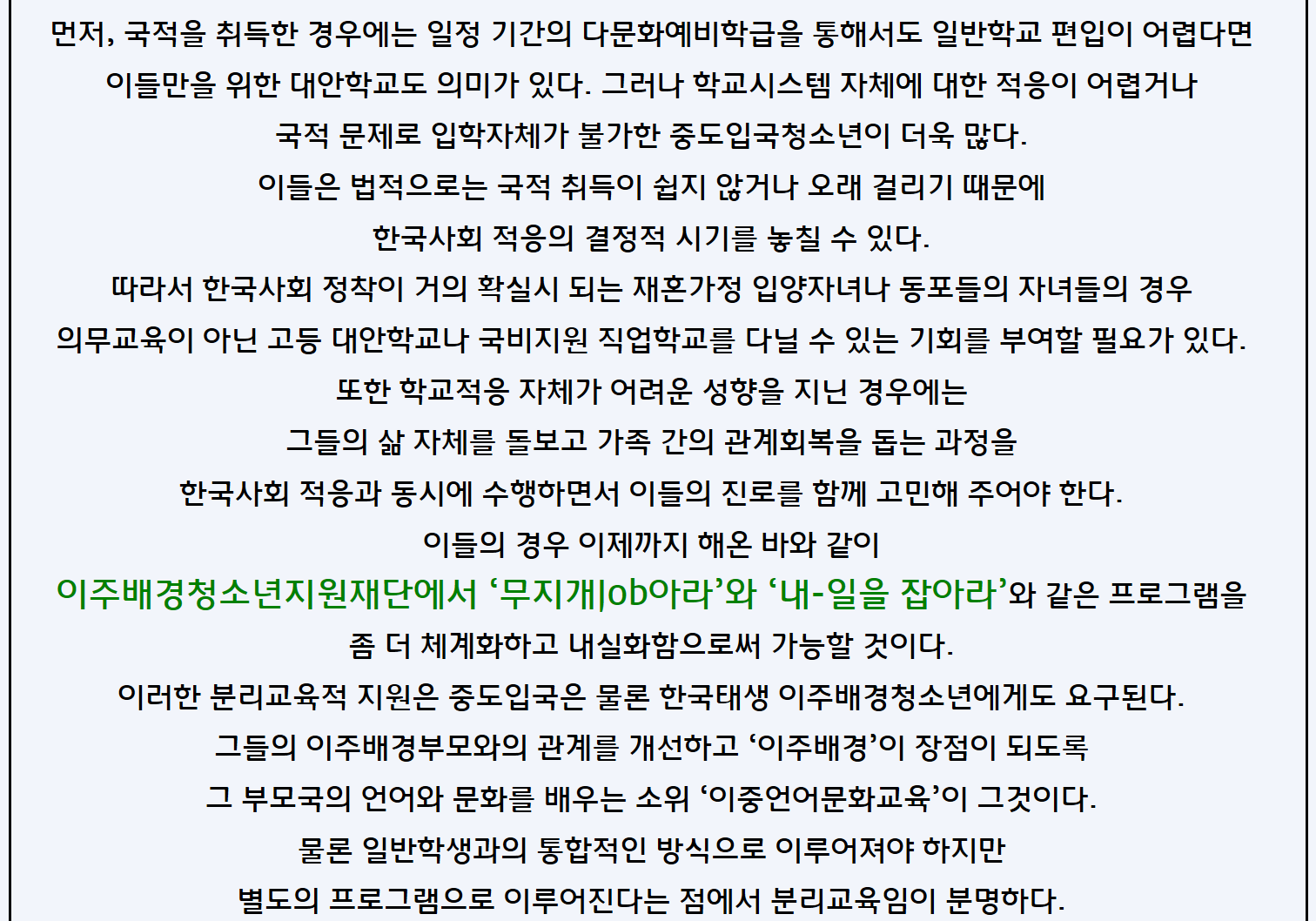 [칼럼] 이주배경청소년의 진로: 보편적 교육시스템의 내실화와 특수한 배려의 조화
