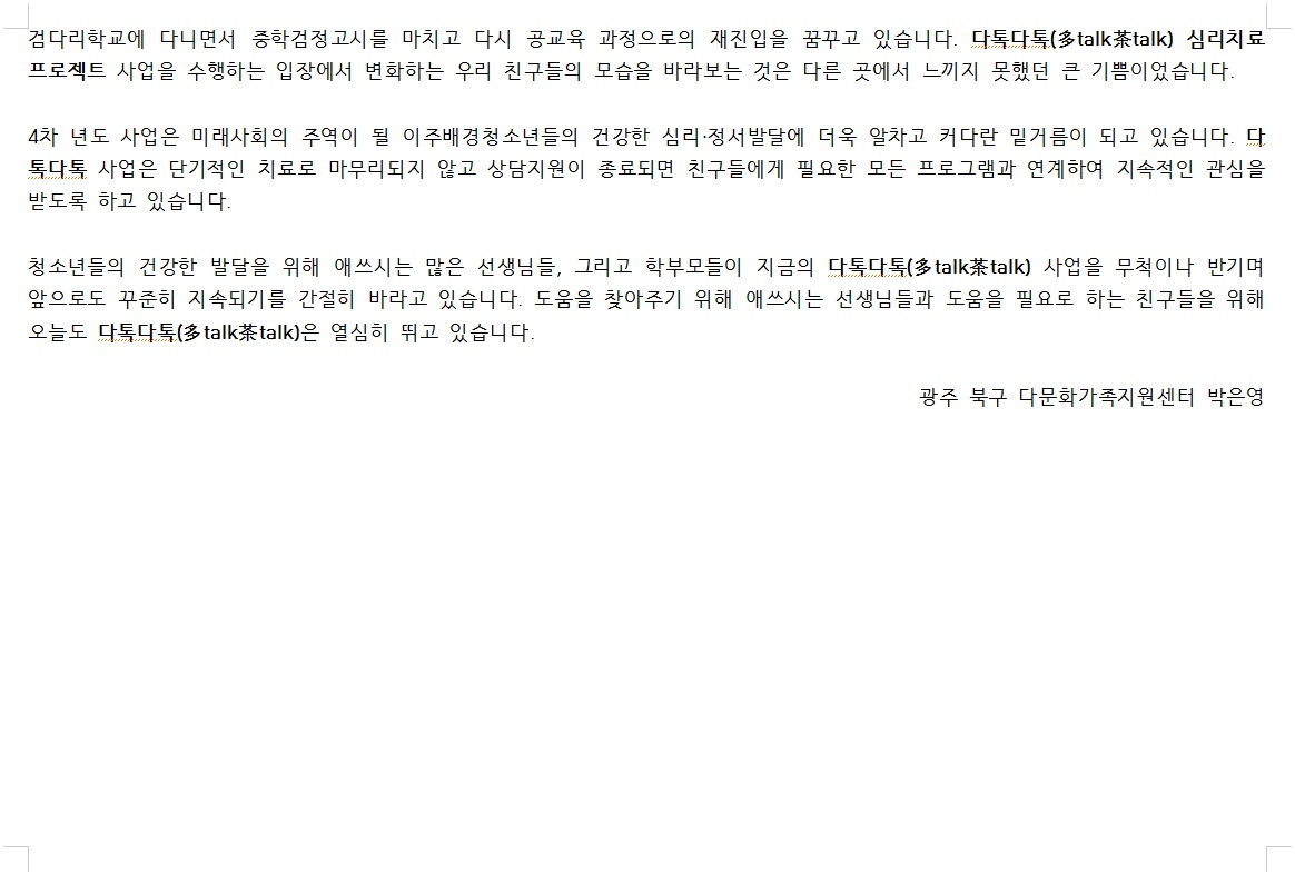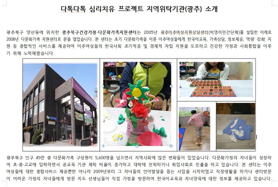 [에세이] 다톡다톡 심리치유 프로젝트_광주 지역위탁기관 활동소개