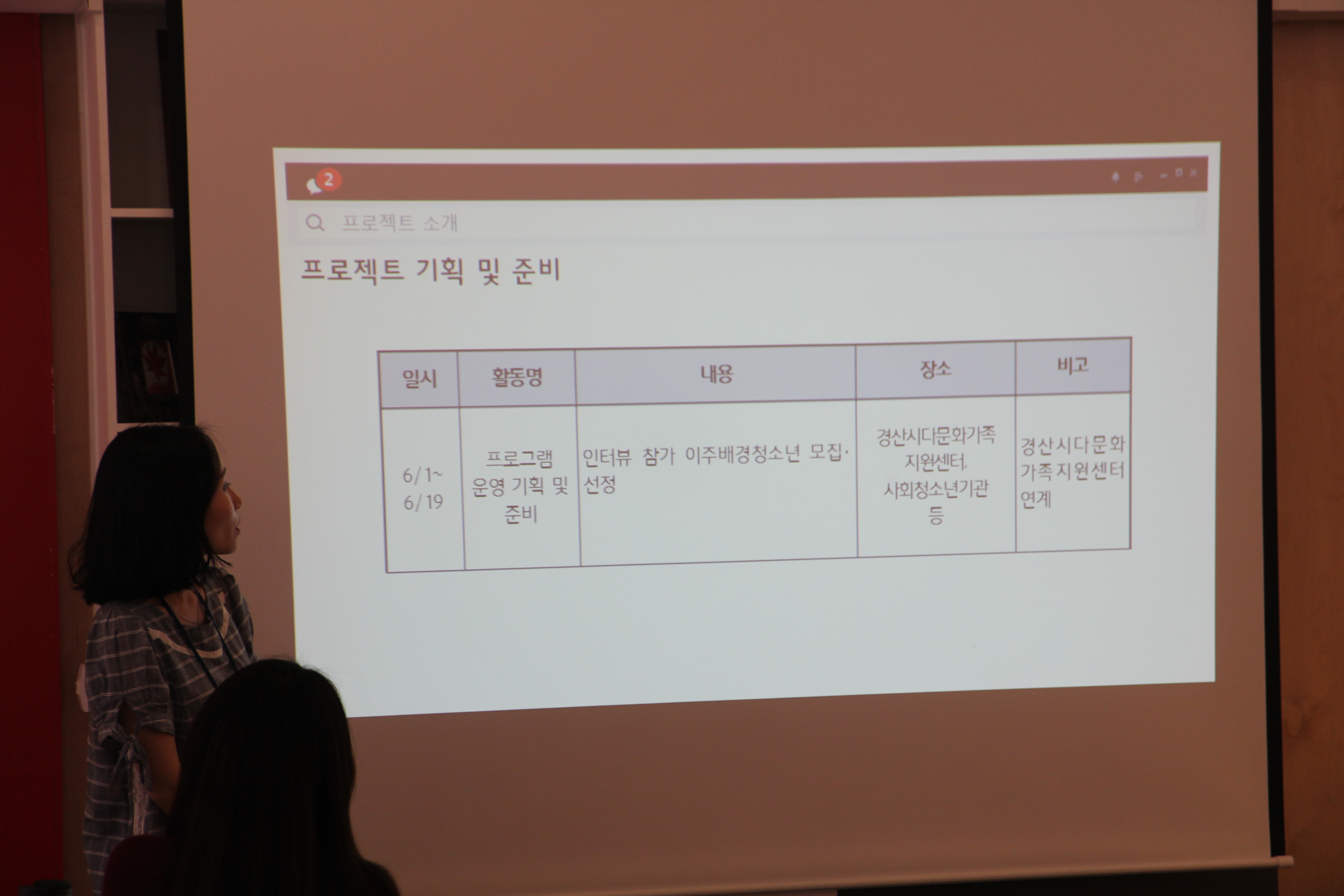 올해로 4회째를 맞는 청년활동가 양성 프로젝트는 대학(원)생, 휴학생, 직장인 등 다양한 청년들이 함께 팀을 이루어 이주배경청소년에 대한 한국사회의 인식 개선을 위한 창의적이고 실천적인 아이디어로 프로젝트 활동을 진행해 오고 있다.