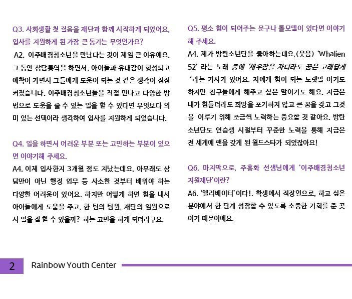 [인터뷰] 사람(人) in Rainbow_ 주홍화(이주배경청소년지원재단 통합지원팀)