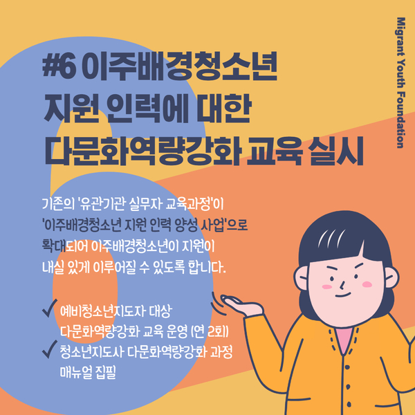 6. 이주배경청소년 지원 인력에 대한 다문화역량강화 교육 실시