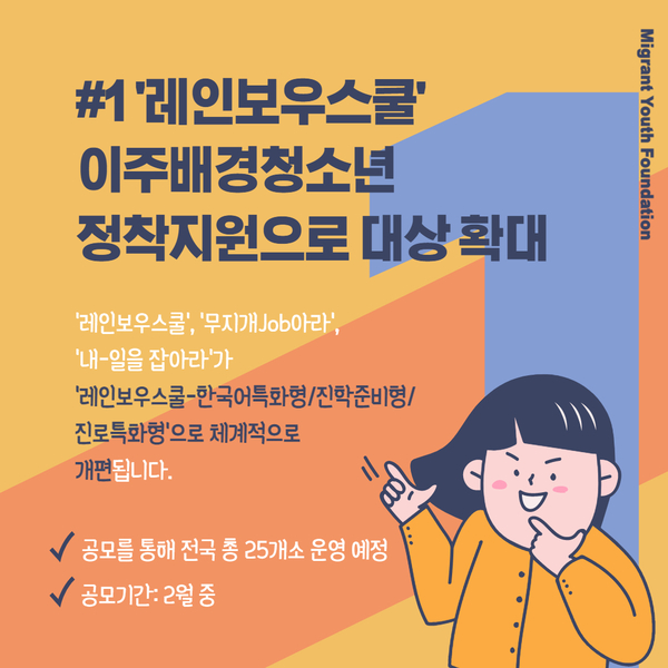 1. '레인보우스쿨' 이주배경청소년 정착지원으로 대상 확대