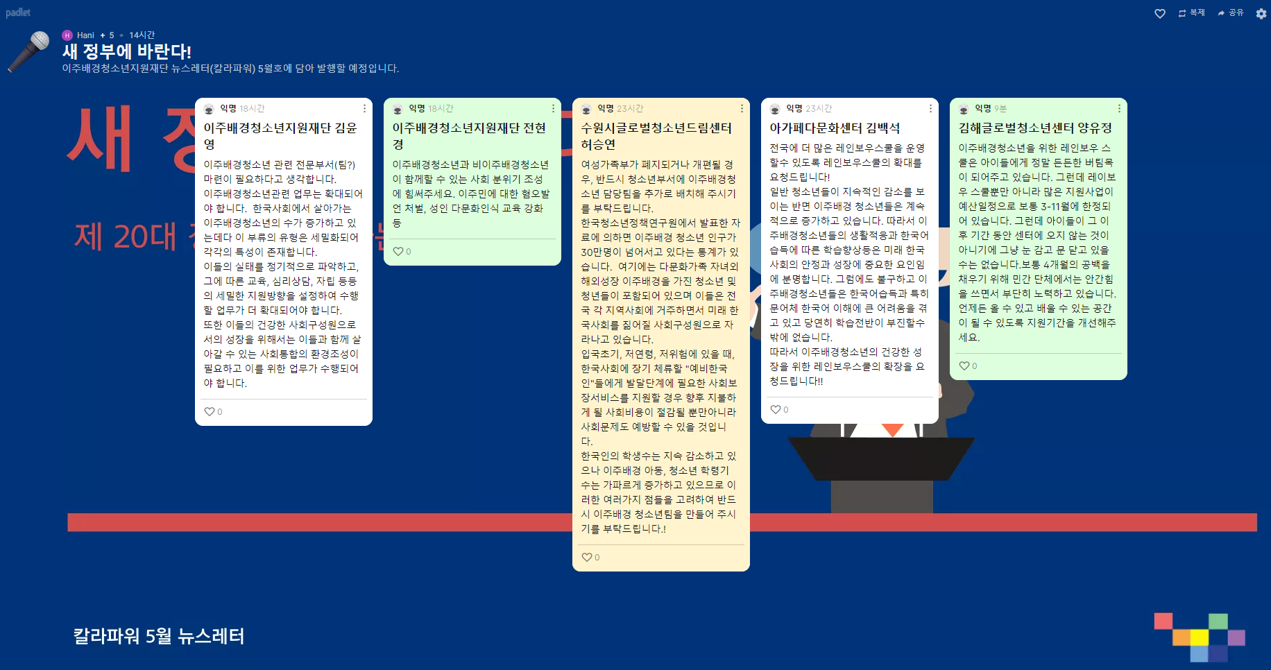 현장에 계신 실무자분들이 정부에게 바라는 점을 모아 패들렛에 담아보았어요.