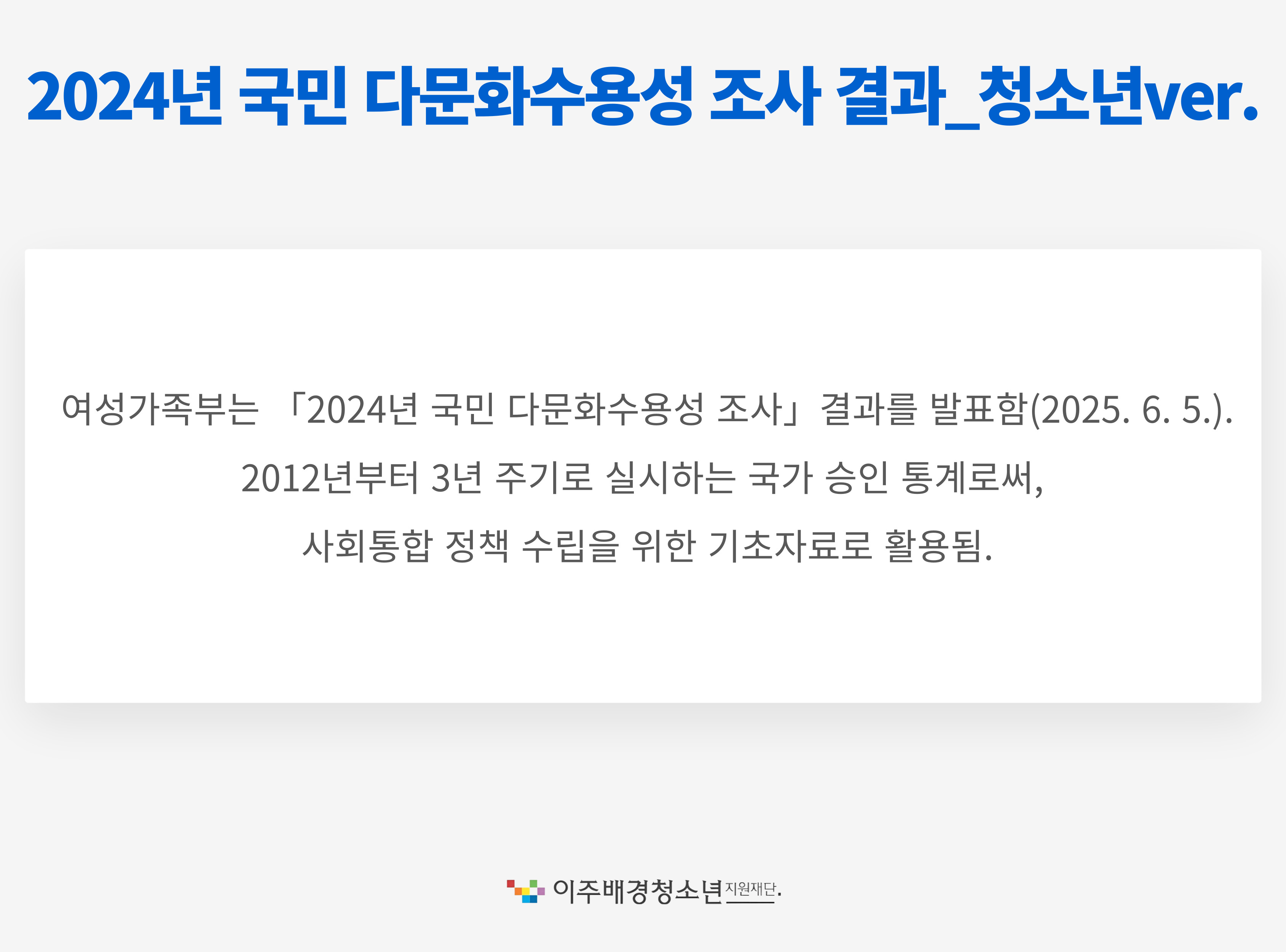 여성가족부, 「2024년 국민 다문화수용성 조사」결과 발표