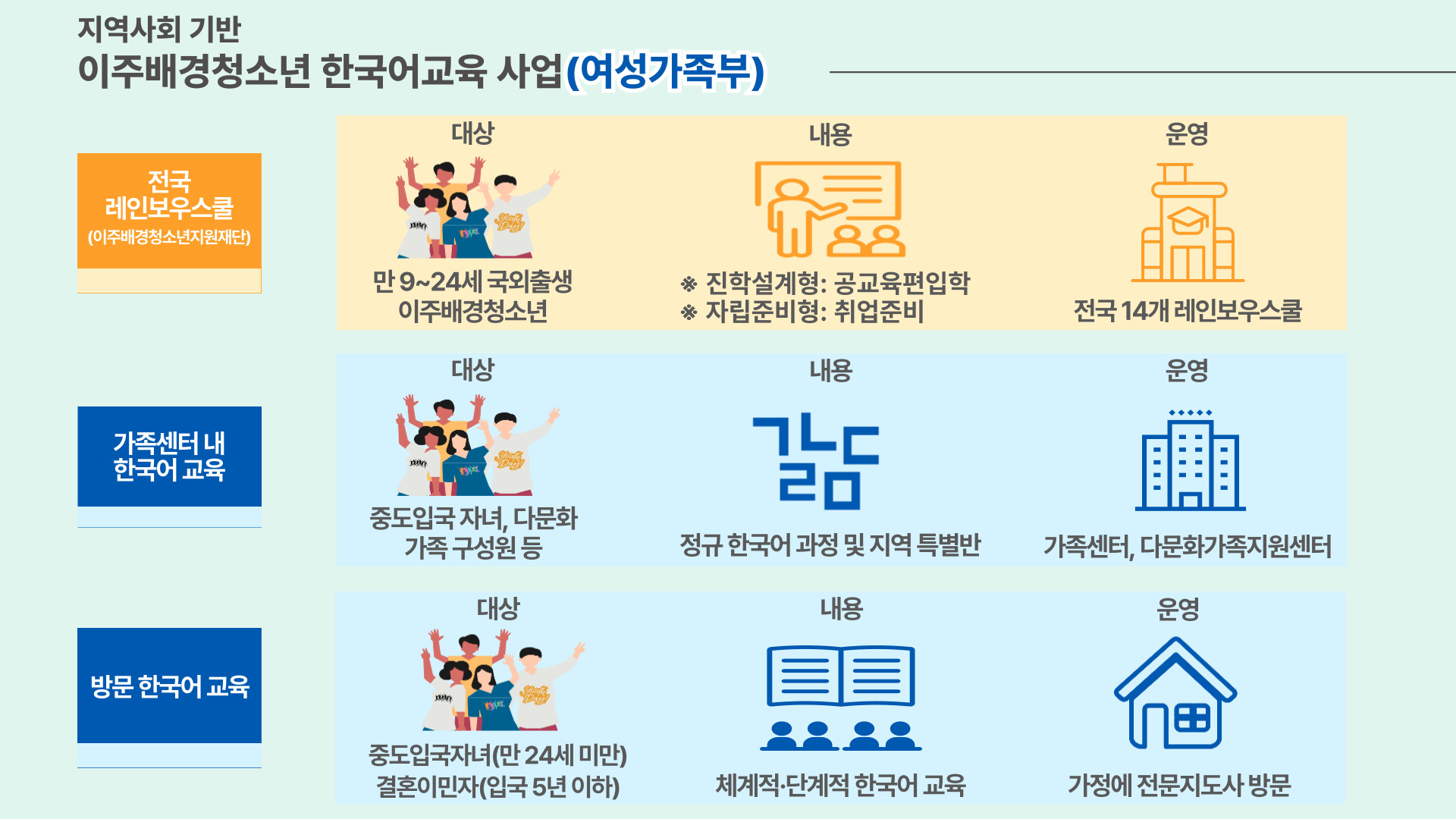 부처별 「이주배경청소년 한국어 교육 현황」정리