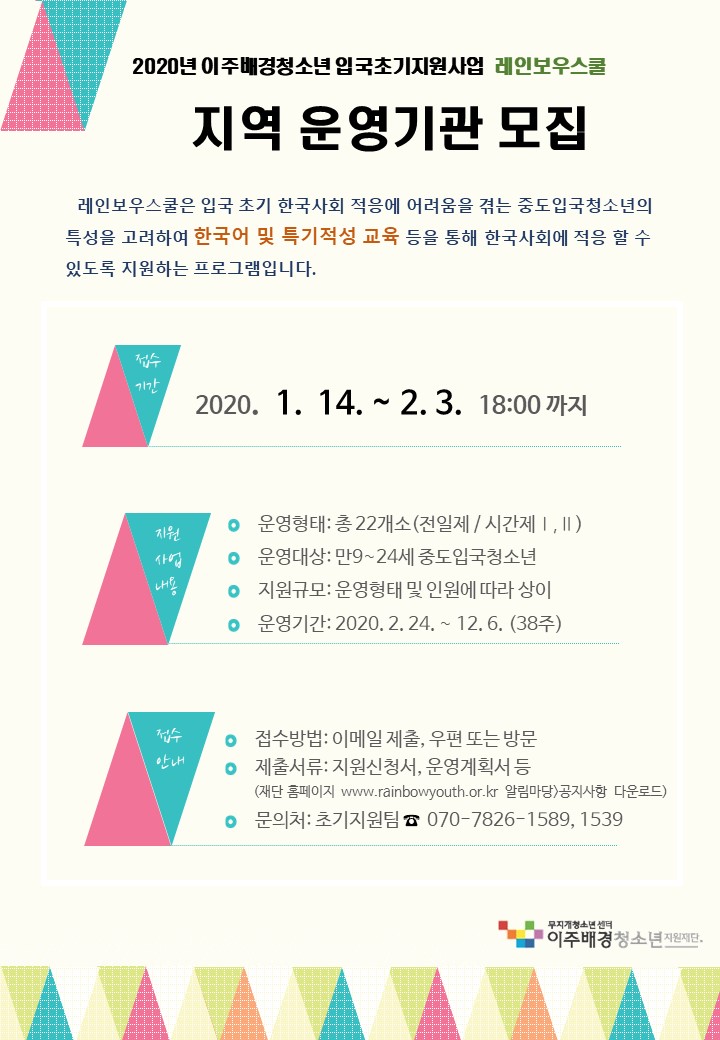 [공모] 2020년 레인보우스쿨 위탁운영 기관 모집