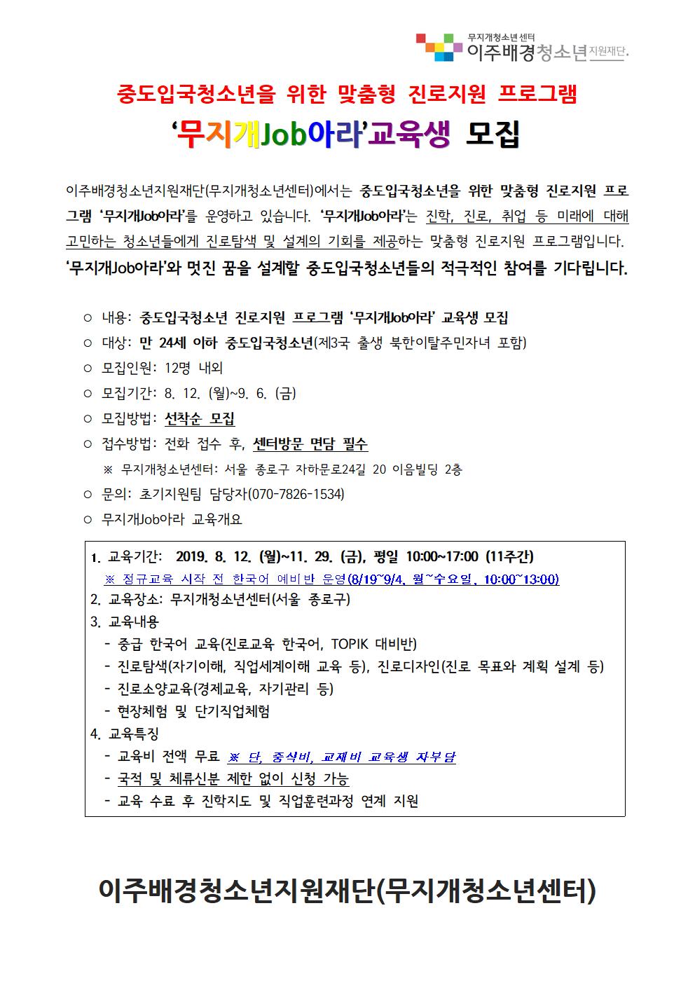 [모집] 진로교육 프로그램 '무지개Job아라' 교육생 모집