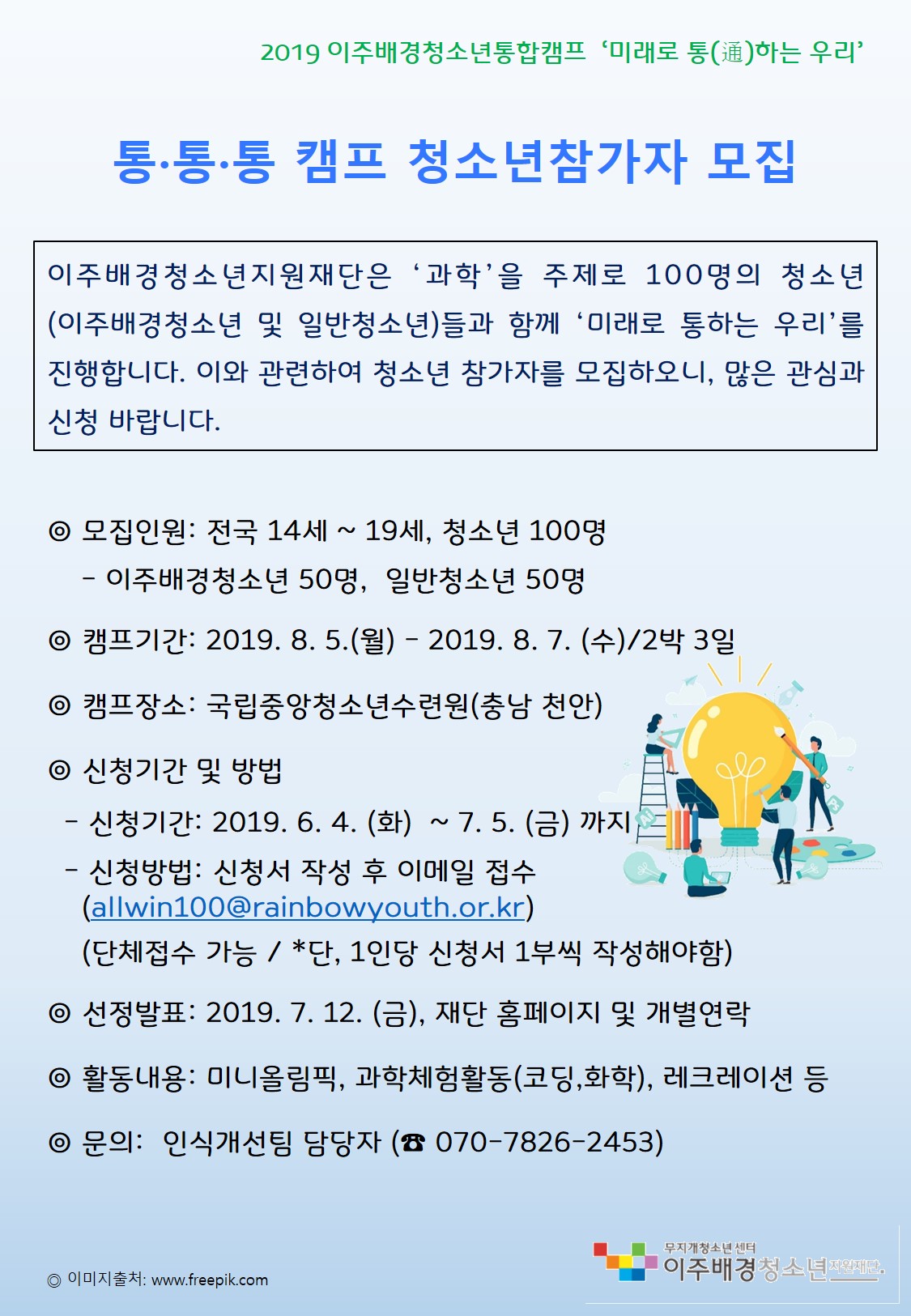 [모집] 2019 이주배경청소년통합캠프 청소년 참가자 모집