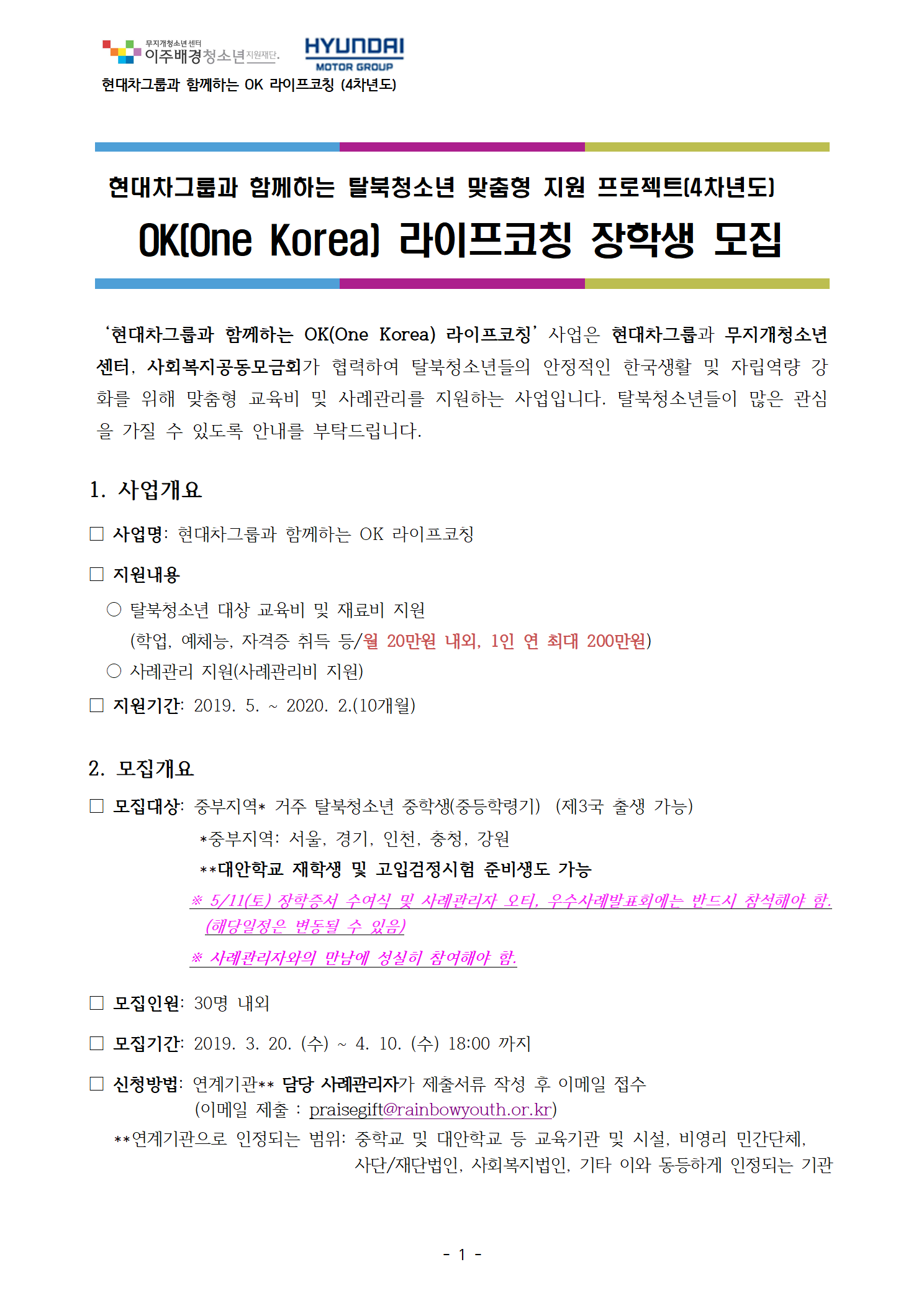[모집] 현대차그룹 후원사업 OK 라이프코칭 4차년도 대상자 모집