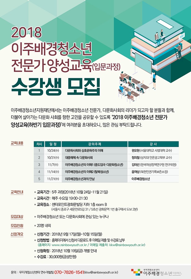 [모집마감] 2018 이주배경청소년 전문가 양성교육 하반기 입문과정 수강생 모집