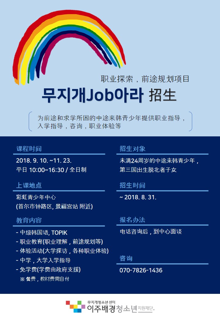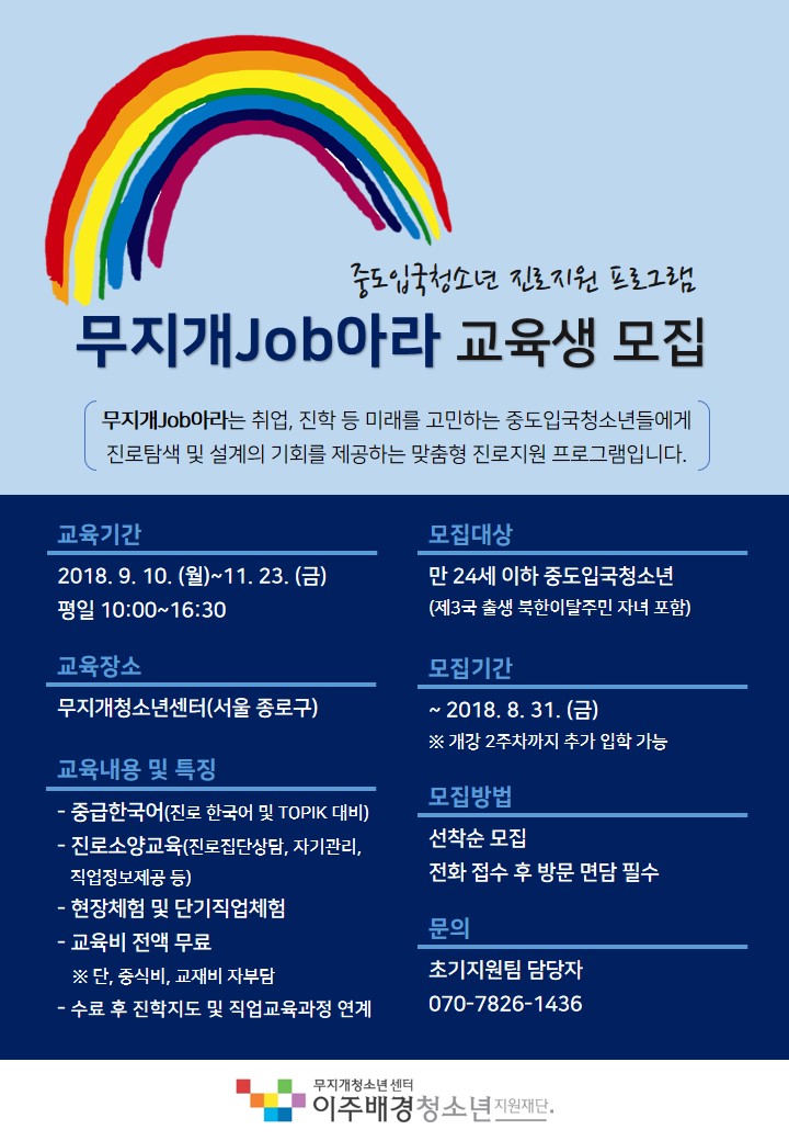 [모집] 진로교육 프로그램 '무지개Job아라' 교육생 모집(2018년 하반기)