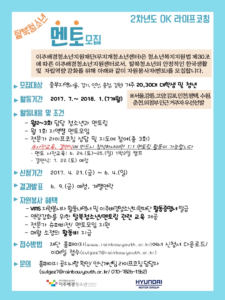 ※ 자원봉사자(멘토) 지원서는 파일첨부 되어있습니다.