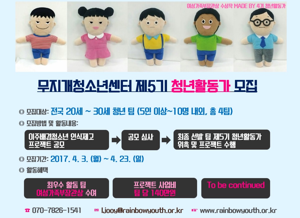 [모집] 무지개청소년센터 제5기 청년활동가 모집 이주배경청소년에 대한 인식제고 프로젝트 공모전
