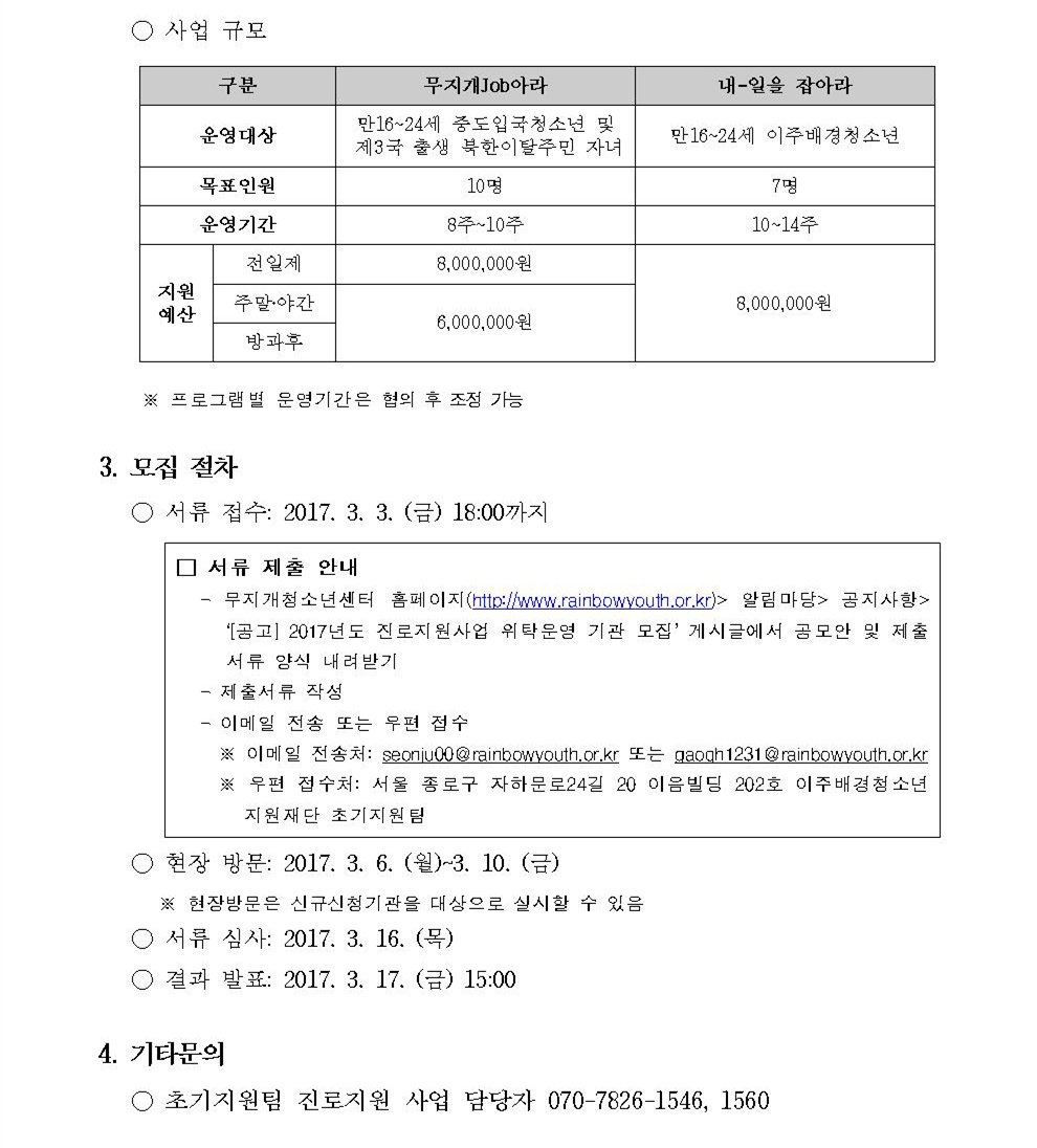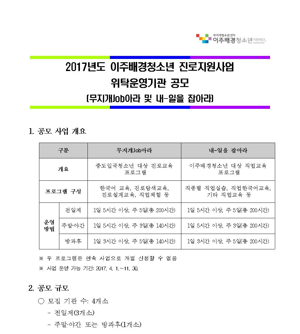 [공고]「2017년도 이주배경청소년 진로지원사업」위탁운영 기관 공모