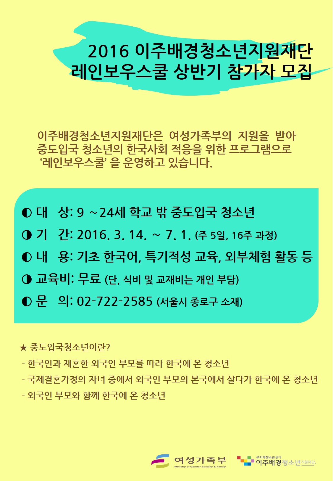 2016년도 상반기 레인보우스쿨 참가자 모집 안내