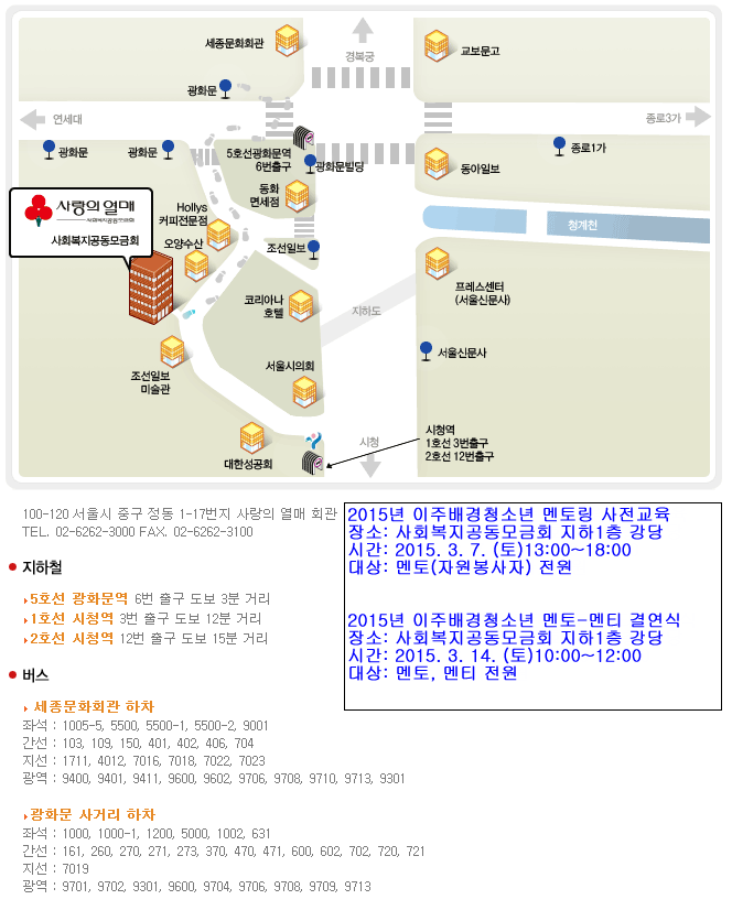 - 장소: 사회복지공동모금회 강당(지하철 5호선 광화문역 하차)