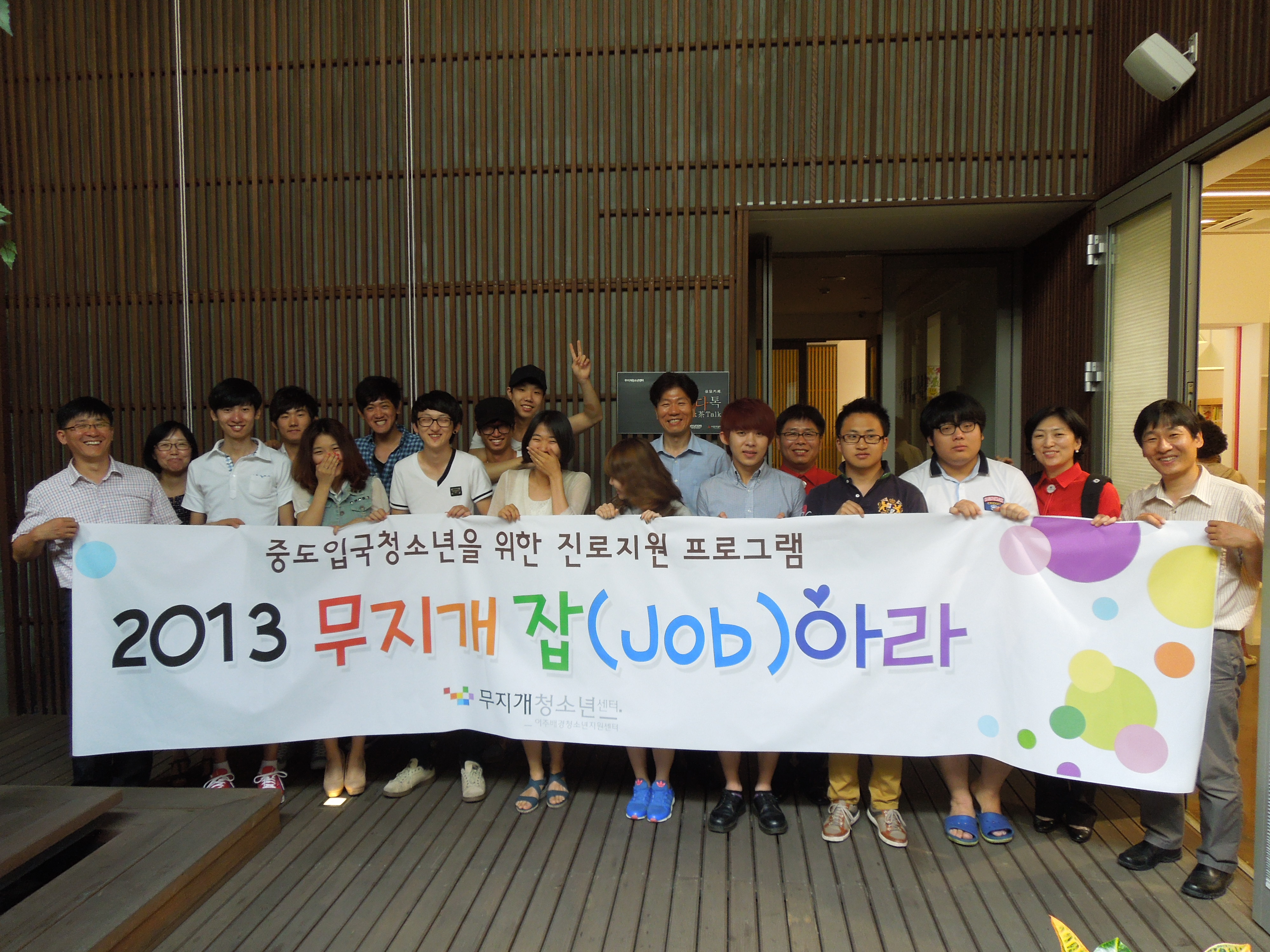 ‘2013 무지개 잡(Job)아라’는 취업, 진학 등 미래를 고민하는 중도입국청소년들에게 진로 관련 정보와 직업 체험의 기회를 제공하는 진로교육/지원 프로그램입니다.
