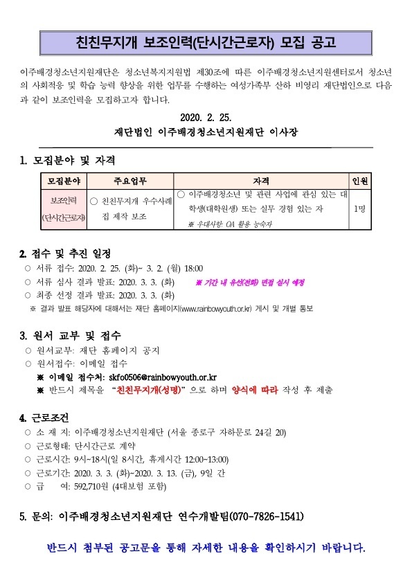 1. 친친무지개보조인력(단시간근로자)모집공고.hwp