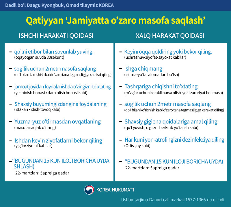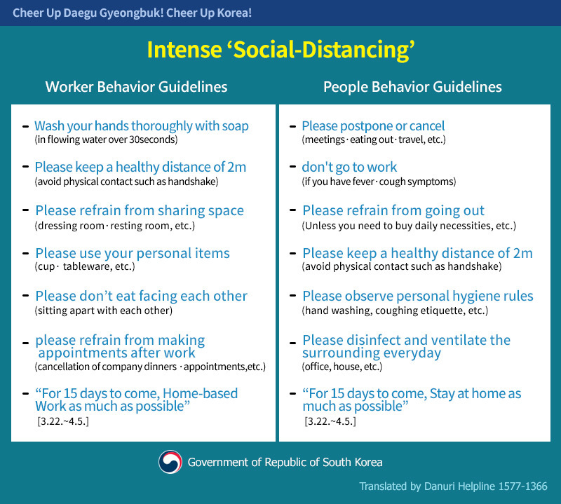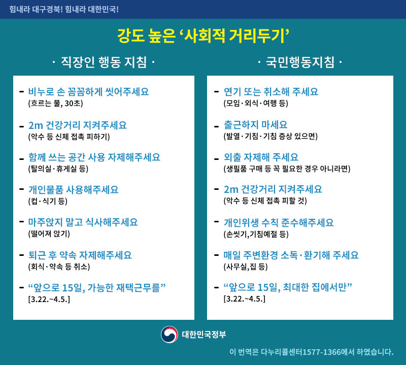코로나 19 확산 방지를 위한 '사회적 거리두기' 안내