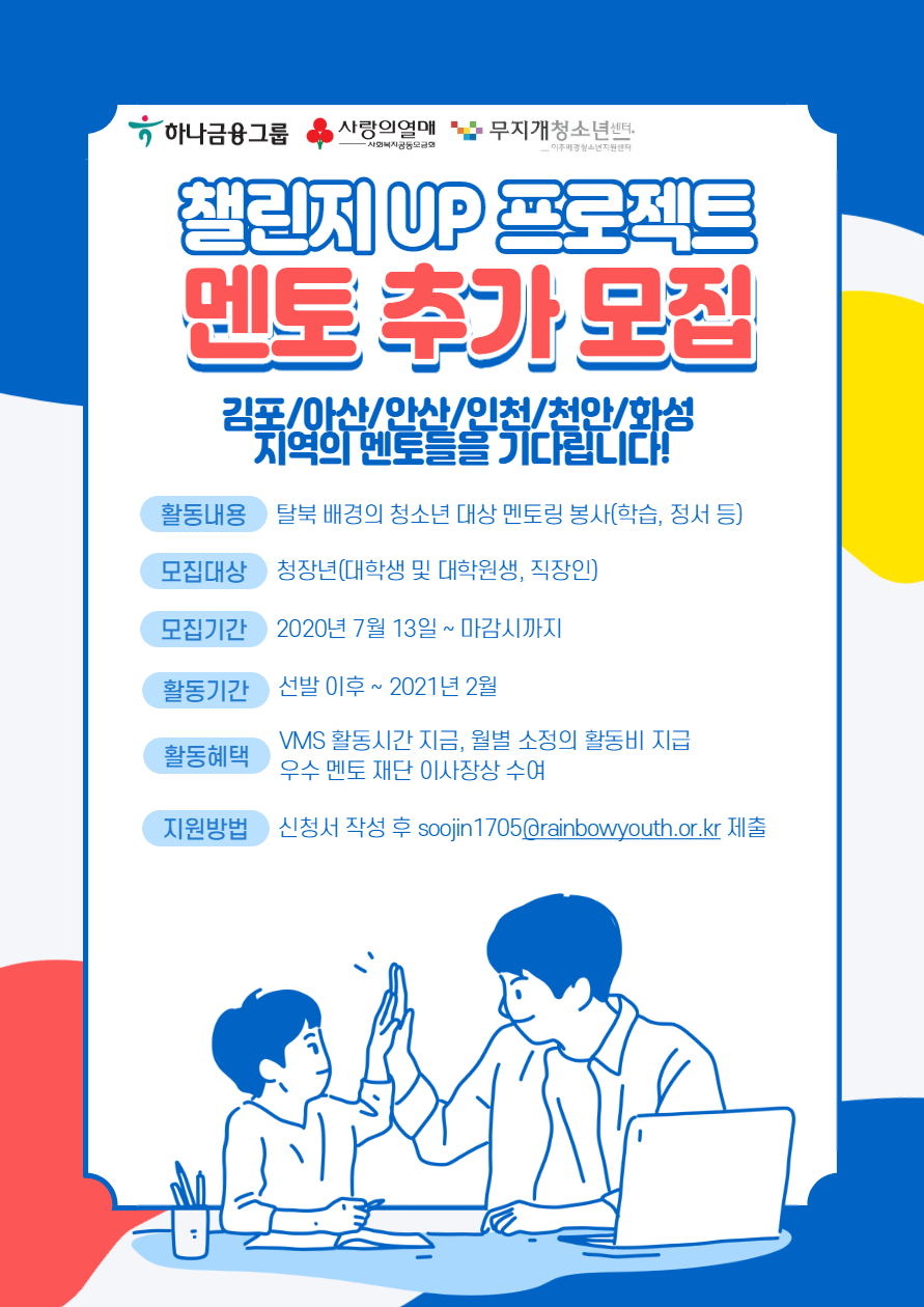 하나금융그룹과 함께하는 '챌린지 UP 프로젝트' 멘토 일부지역 추가모집