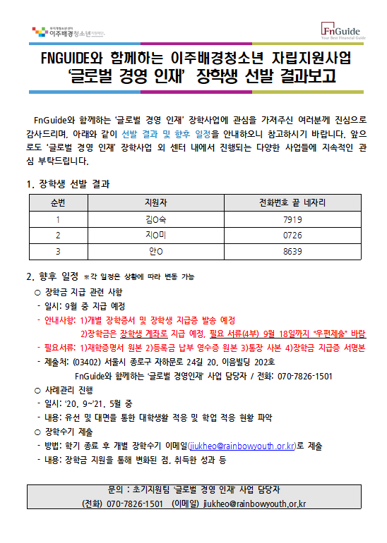 FnGuide와 함께하는 '글로벌 경영 인재' 장학생 선발 결과