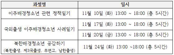 1. 교육명: 이주배경청소년 유관기관 실무자 교육과정