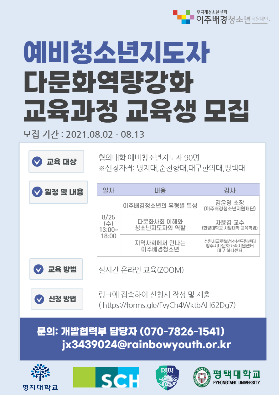 ※신청자격: 명지대학교, 평택대학교, 순천향대학교, 대구한의대학교