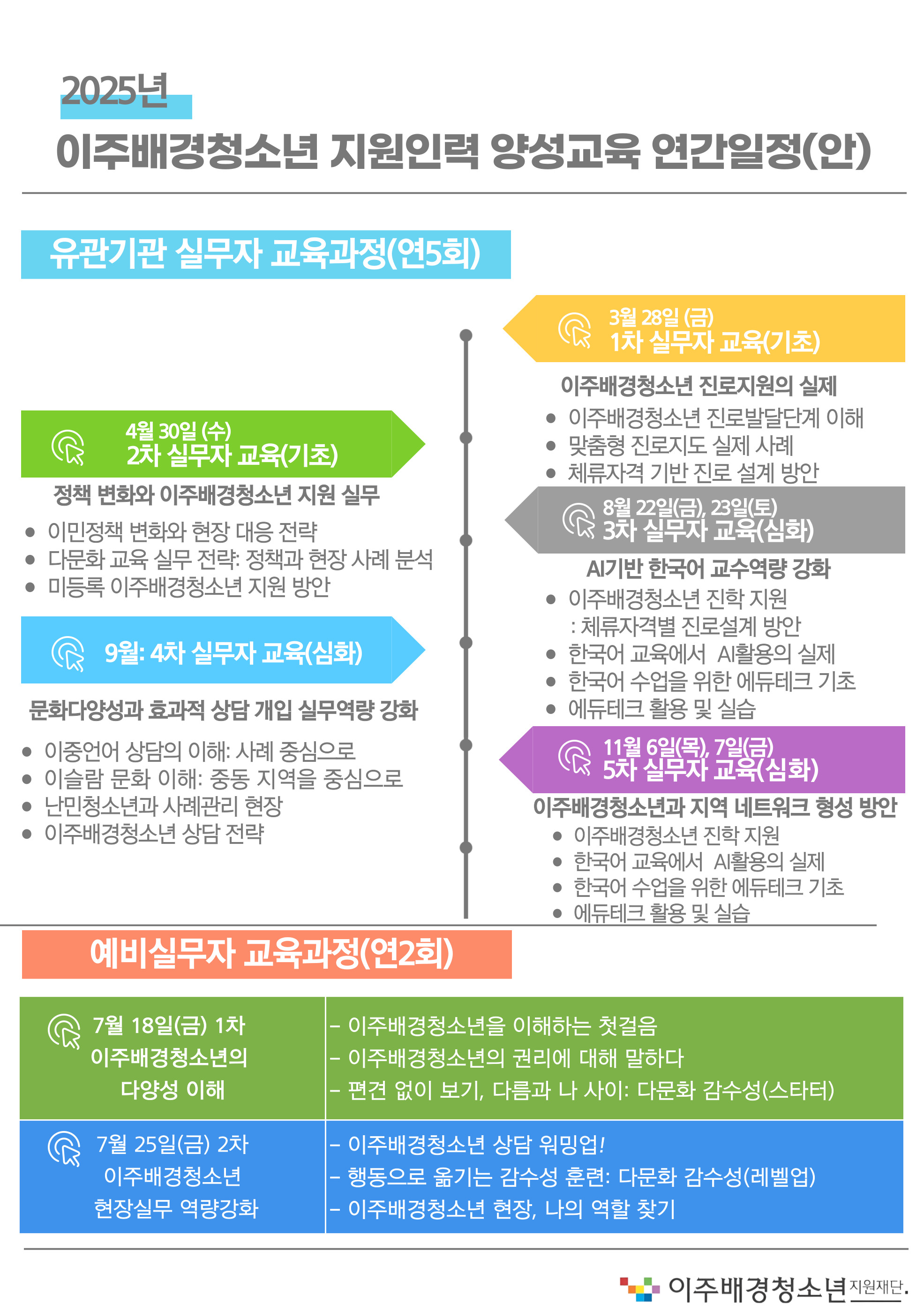 2025년 이주배경청소년 지원인력 양성교육 연간일정 안내