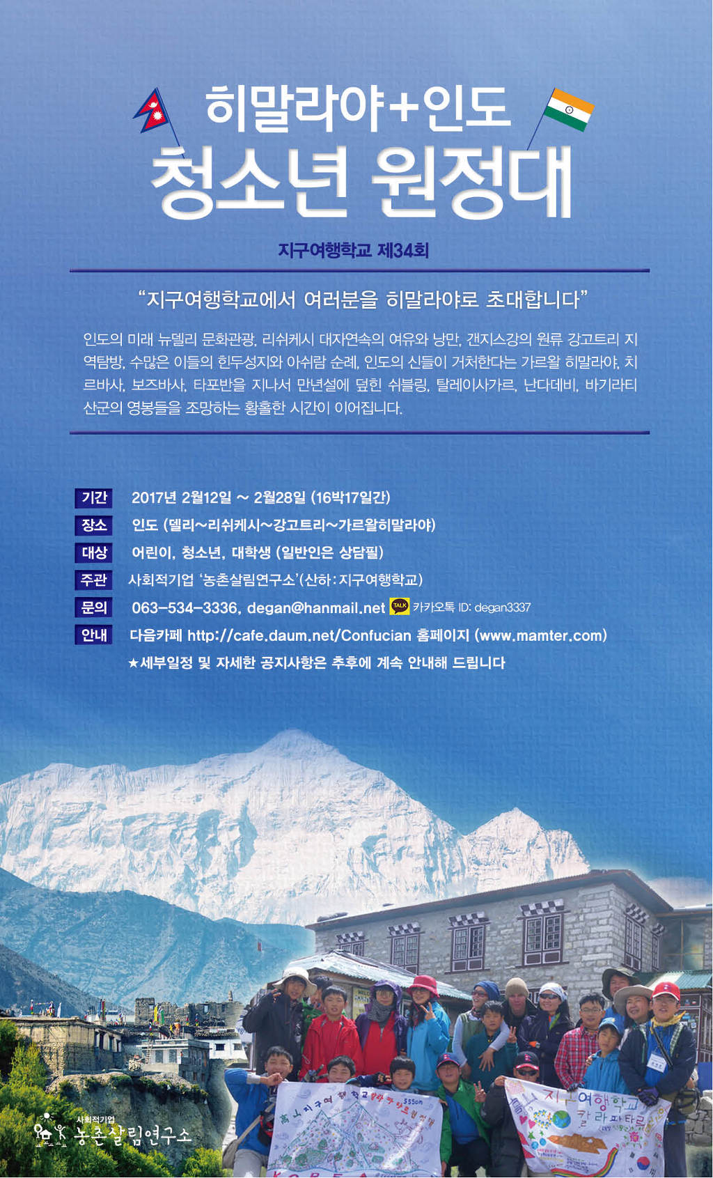 지구여행학교 [제34회 인도/히말라야 청소년순례단원]을 모집합니다.